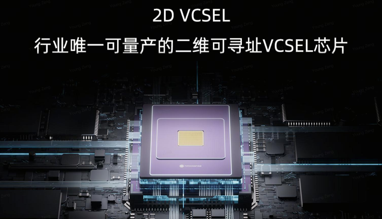 芯片2)2D VCSEL 芯片,是全球唯一量产的二维可寻址 VCSEL 发射芯片,可以把激光面阵与驱动单元合二为一,减少体积。