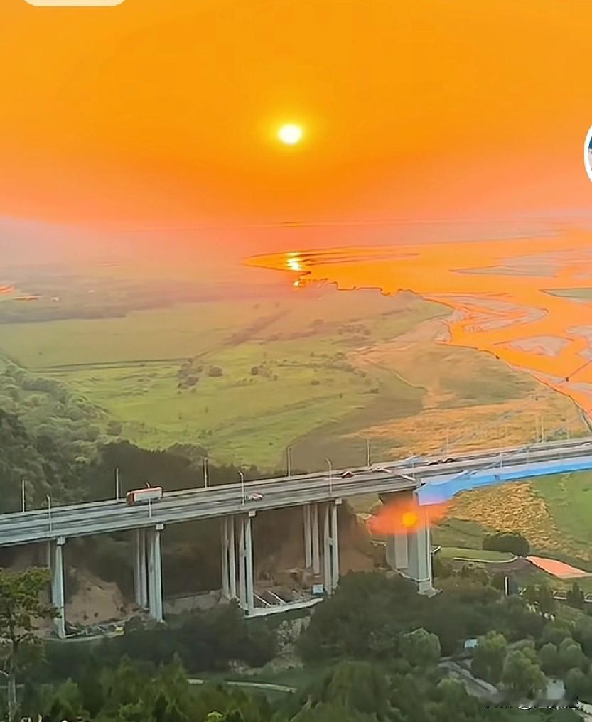 秋雨连绵,秋意浓郁,秋凉缠绵,秋叶斑斓。好久没有见到日出,也就没有见到日落。雨后初霁的黄河上,再现黄河落日圆的景象。金光熠熠生辉,河水汤汤激扬,平台高架通途,好一派祖国大好河山图。这几年有目共睹的环境治理取得好成绩,愿我们不走回头路,生活在一个祥云飘然,清风徐来,风调雨顺的土地上。