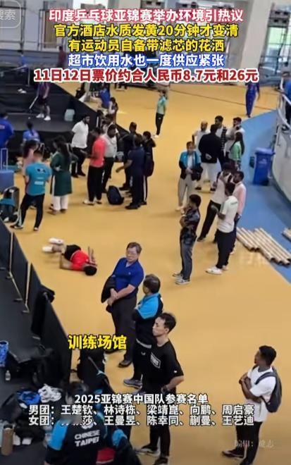 印度这就是自损形象,通过这一次亚锦赛,亚洲各国对印度的印象差评,各国运动员对举办方提供的住宿、餐饮、比赛场地表示不满,亚乒联没有做出任何回应。 由印度布巴内斯瓦尔举办的这场乒乓球亚锦赛,很多国家队伍到达酒店拧开水龙头,流出来的是浑浊到不敢用的水。 为了能用上稍微干净一点的水,需要放掉将近二十分钟的水才略微变清,连生活最基础的保障都摆成了这样,很多运动员还没进场就明白,这趟比赛恐怕不会顺利。 比赛场馆的情况更让人大跌眼镜,正式开赛前一天,场地还在赶工,地胶铺得七零八落,挡板外就是裸露的地面。 连乒乓球桌都歪着,现场工作人员不是用专业工具,而是塞几页纸去垫桌脚,训练场地几乎没有,韩国、日本、中国台北等队只能挤在一个角落轮流热身,其余的人只能在空地或地板上休息。 除了硬件,比赛的专业性也掉了队,现场没有电子计分,全靠人工翻牌,解说只能用纸笔记录比分,过程缓慢且容易出错。 转播信号不稳定,观众和球迷几乎无法顺利完整观看比赛,这样的安排,跟洲际大赛应有的标准差了太远。 场馆环境也问题不断,青蛙和飞虫四处乱窜,当地还发布了暴雨红色预警。更严重的是挂旗错误,主办方将中国台北的队旗搞成了“台独旗”,这直接触碰政治红线,显示出组织工作的混乱到了离谱的程度。 主办方完全靠不住,亚乒联也没有声音,信任一点点被消耗,各队只能自救,中国台北队的教练带了过滤花洒,成了所有人眼里的宝贝。 中国队更是提前空运了200箱矿泉水,确保饮水安全,还自备药品,并制定严格的用水纪律,饮品离开视线必须直接扔掉,不留风险。这种做法虽然看似极端,却是在无法信赖外部环境的情况下唯一的保障。 可这些努力也没能让大家安心,一些运动员选择退赛来表态,中国台北的林昀儒和韩国的高成瑞先后退出比赛,这是对这场赛事失序的直接回应,也是无奈之举。对于他们来说,这不仅是比赛不公平,更是安全和尊严无法保障的问题。 这场亚锦赛,输掉的不只是比分,还有信任,当运动员在赛场上的首要任务变成了如何安全完赛时,竞技和精神就已经丢掉了,球迷的愿望也从“争金夺银”变成了“平安回来”,这本身就是对赛事公信力的警告。 这样的局面,冲击的不只是印度的国家形象,也让整个亚洲乒乓球圈重新思考未来赛事的标准。 你觉得这样的赛事问题该由谁来负责?欢迎在评论区留下你的看法。