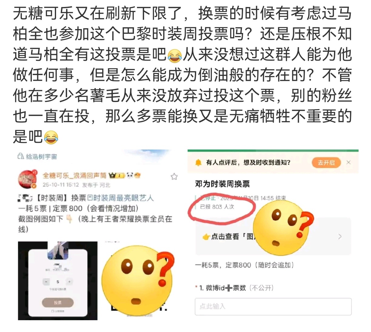 全糖可乐把马柏全的票换成别人的了?马柏全参加巴黎时装周了啊,还参加了两场
