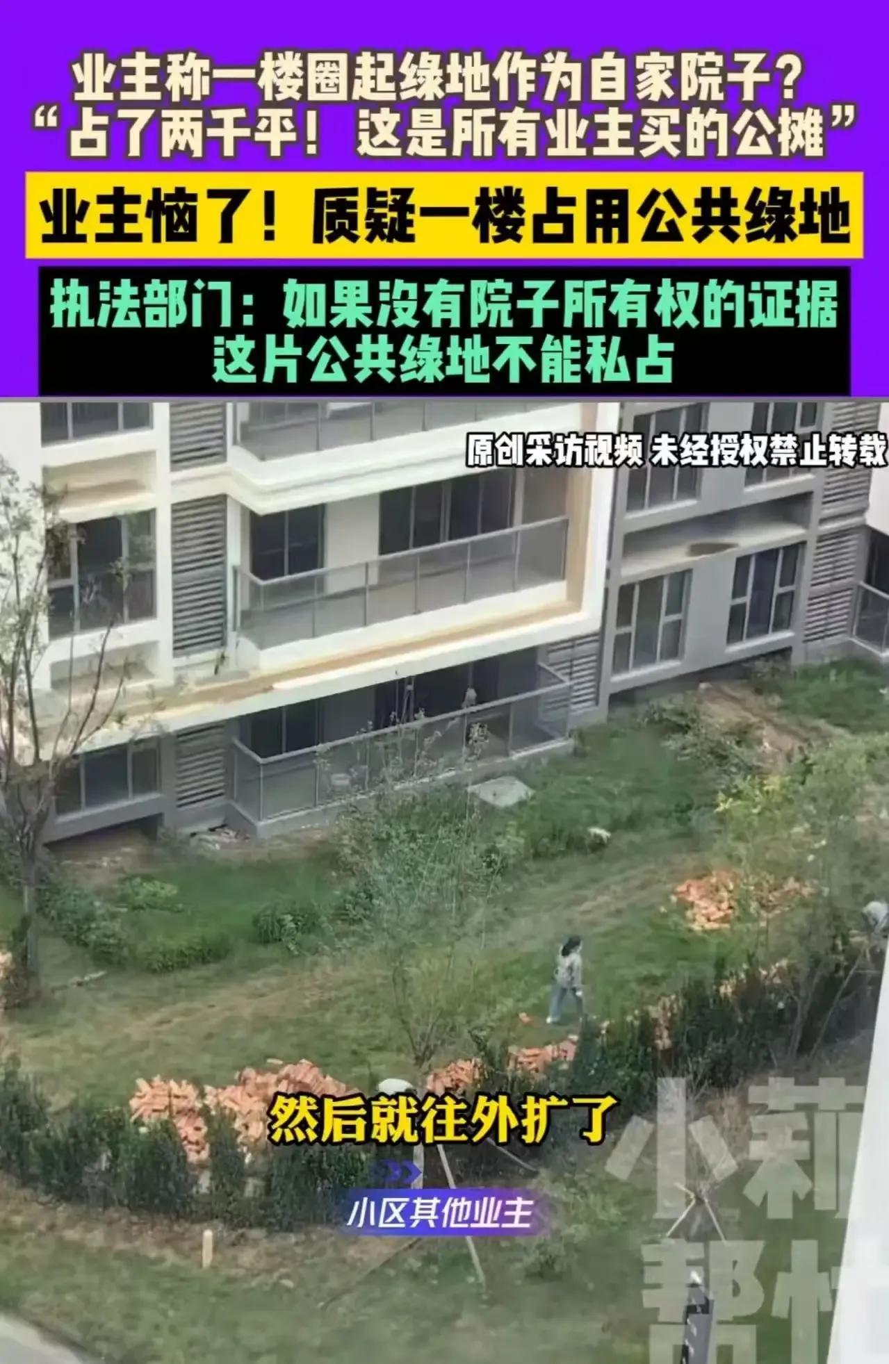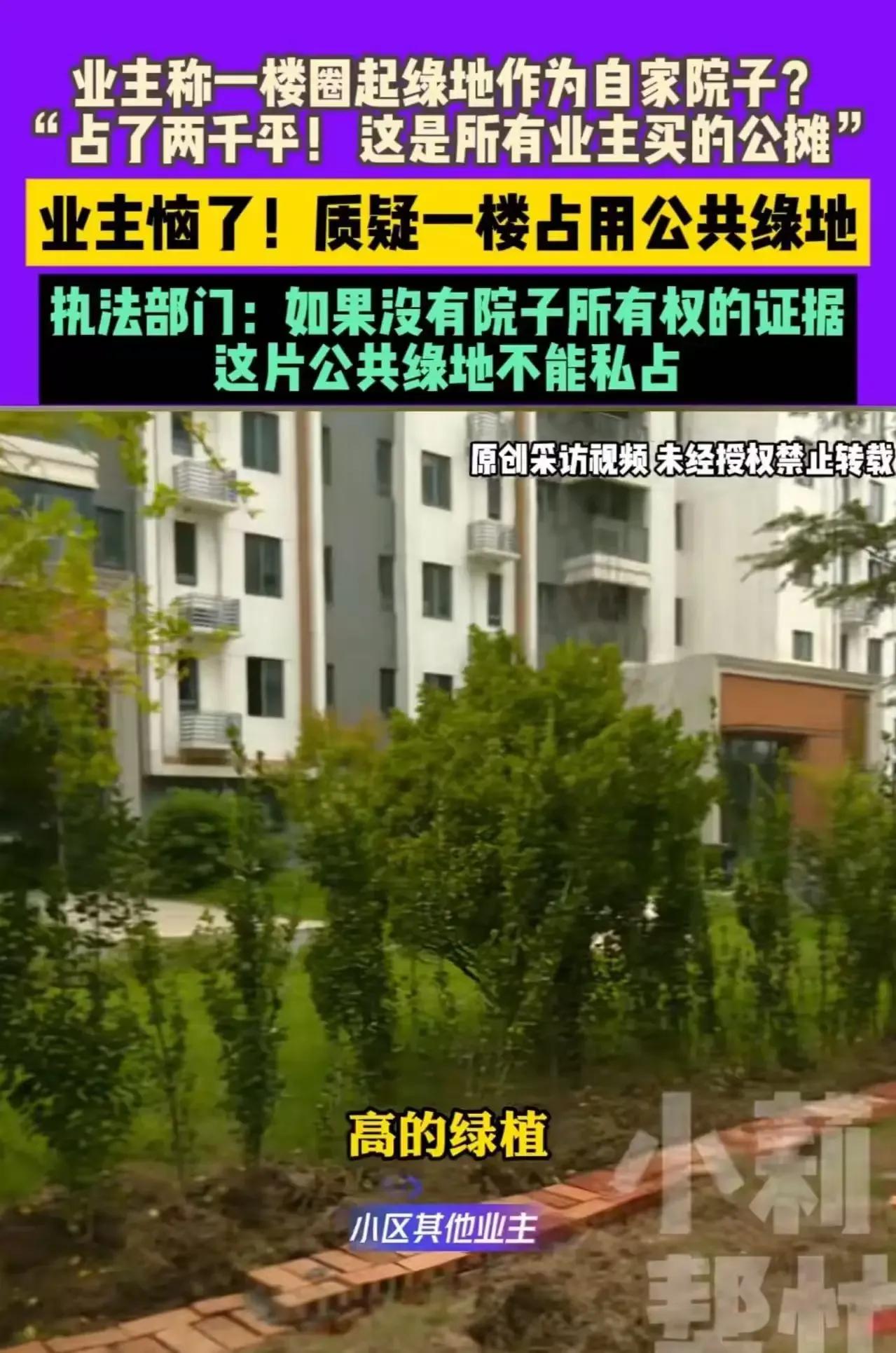 平草坪作为自家院子,楼上的业主不干了,质疑一楼业主占用公共绿地!一楼业主:“买房的时候开发商说买一楼送院子,不然我怎么会高价买一楼?”网友:想多花钱买一楼,又羡慕人家有! 平草坪,本是一个充满温馨与生活气息的小天地,却因为“绿地”问题突然成为众矢之的。楼上的业主怒气冲天,指责一楼业主“占用公共绿地”,引发一场关于权益与责任的激烈争论。而一楼业主则理直气壮地反击:“买房时,开发商说买一楼送院子,不然我怎么会高价买一楼?”这句话,仿佛点燃了众人的情绪,也让人不禁思考:当“承诺”变成“利益”的时候,谁又是真正的受益者? 事情的起因很简单:一楼业主拥有一个宽敞的院子,原本是自己理想中的生活空间。然而,随着时间推移,楼上的业主开始质疑这片“院子”是否属于公共绿地,甚至准备采取行动“维护权益”。这样的争执,不禁让人联想到我们每个人生活中的“小绿地”——那些看似属于自己的权益,实际上是否都被“合理”划分?或者,我们在追求个人利益时,是否也像楼上的业主一样,忽略了公共利益和整体的和谐? 更深层次的问题在于:我们到底在争夺什么?是一块绿地,一个空间,还是一种“合理”的认知?一楼业主强调自己“买一楼送院子”的承诺,似乎在告诉我们:只要当初的承诺还在,权益就应得到尊重。而楼上的业主则代表了另一种声音:公共空间应由大家共同维护,不能被个人私占。这场“绿地之争”,其实折射出的是现代社会中个人权益与公共利益的微妙平衡。 网友的评论也异常精彩。有的笑谈:“想花钱买一楼,又羡慕人家有院子,真是矛盾的心态。”也有人直言:“这不就是生活中的小冲突吗?谁也不愿意被‘占便宜’,但更不愿意看到公共利益被侵占。”在这些评论中,我们似乎看到了社会的缩影:每个人都在为自己的“权益”奋战,但又渴望“和谐共处”。 其实,这个事件的背后,是我们对“家的定义”的深思。家,不仅是一个住所,更是一份责任和共享。无论是一楼的院子,还是楼上的绿地,都应成为我们共同呵护的“生命线”。当利益冲突发生时,或许我们更应该换位思考:尊重彼此的权益,理解公共空间的意义,才能让我们的生活变得更美好。 这场“绿地之争”,提醒着我们:权益与责任永远是相辅相成的。让我们在追求个人幸福的同时,也不要忘了,生活的美好,源自每个人的理解与包容。或许,只有懂得“共享”的人,才能真正拥有属于自己的那片绿色天地。小区草坪