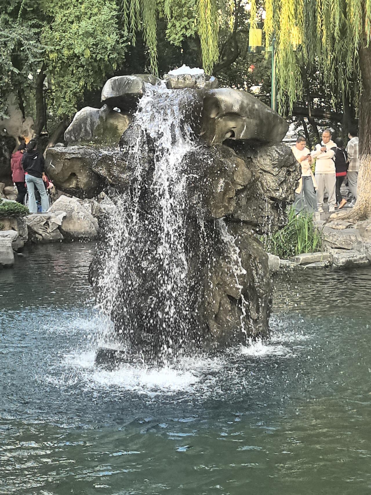 10月的济南五龙潭景区热闹非凡,“月牙飞瀑”成了顶流打卡点。10月8日国庆中秋假