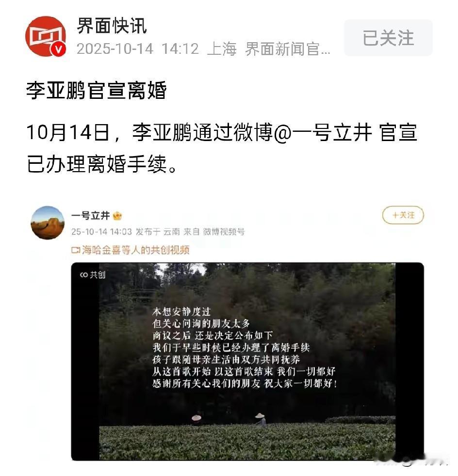 李亚鹏官宣离婚了!好像他结婚也没有多久,怎么就离婚了呢!怎么就像过家家一样。这个时候本来更是考验夫妻感情的时候,陪他度过人生低谷时期,走向更辉煌的明天!总是倒在黎明前一天实在挺可惜的!
