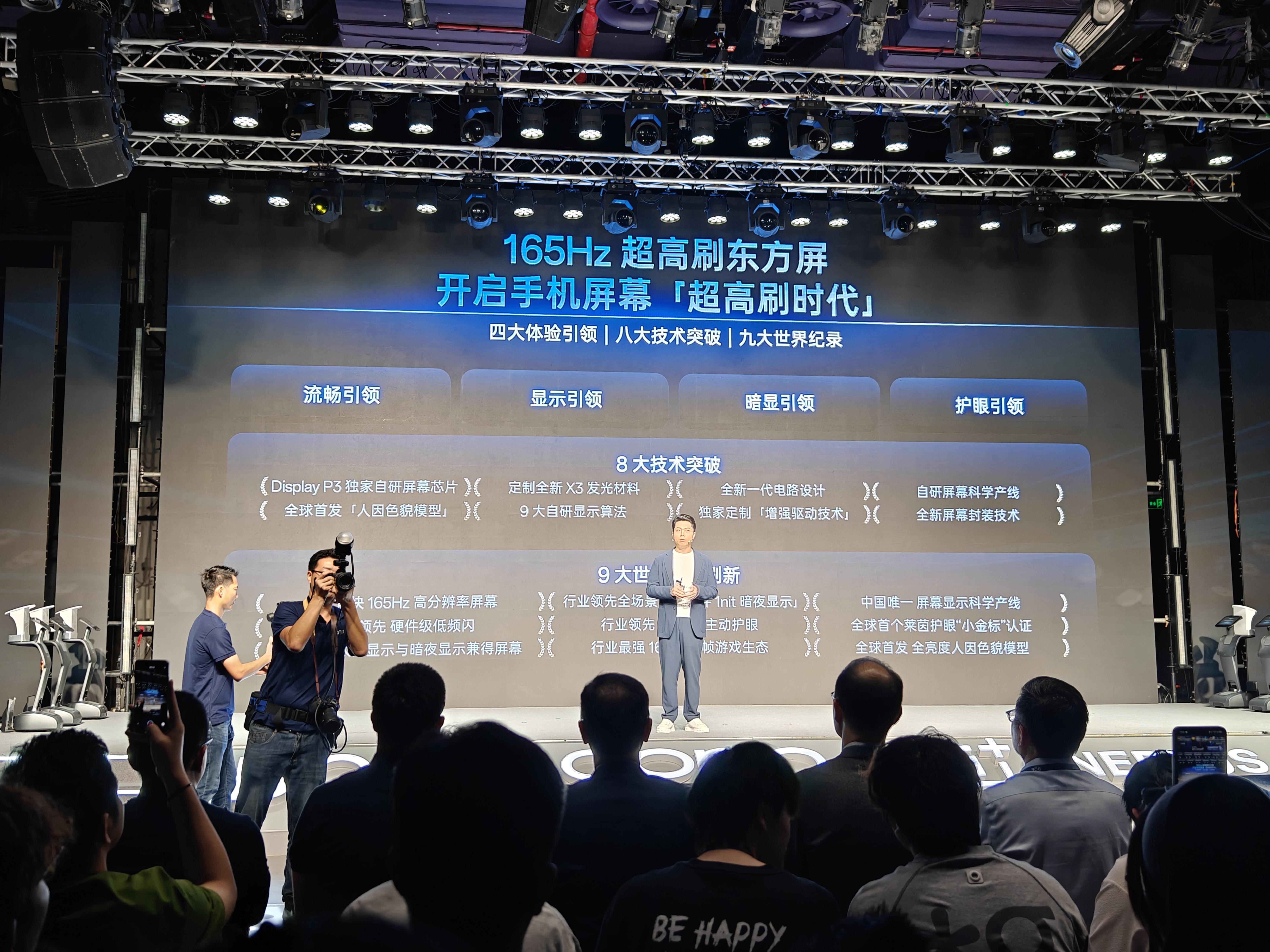 这是首块儿 165Hz 高分辨屏幕、真硬件 1nit 显示、LTPO2.0 自适应变频、1.15mm 超窄四等边。