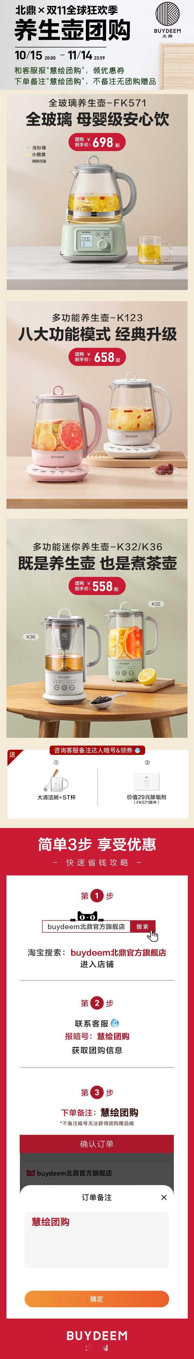 北鼎双11🚂开动啦~新品全玻璃养 生壶、陶瓷汽锅也都申请了,団价基础上还可叠加国补和88vip消费quan,📣实际入手更低,下单备注“慧绘团购”,赠品更多~揪①口北鼎珐琅焖煮锅+①个宜盾普破壁机+③盒五红茶,20号、31和14号分别在转發里开~