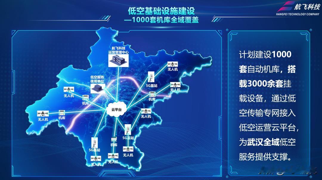 武汉计划布设1000套无人机自动机库 武汉市正加速推进低空经济基础设施建设,计划布设1000套无人机自动机库,构建“空天地一体化”立体感知网络。 计划一期工程:2025年内完成400套机库建设,覆盖三环内全域及三环外重点区域(覆盖率超60%)。截至10月14日,已建成121套机库,覆盖全市15个区。 五年目标:计划五年内建成1000套机库,配套3000余套挂载设备,并设立运营管理中心。机库支持两分钟快速换电,无人机可搭载双挂载以适应复杂城市环境。 项目通过融合“空”(低空空域与卫星定位)、“天”(低空飞行器)、“地”(地面设施)三层架构,实现城市全方位监测。运营主体为武汉航飞科技有限公司(由武汉城发集团航发集团与普宙科技合资成立)。 无人机将用于常态化巡检、应急处理、交通管理等28个领域,未来拓展至城际物流、医疗急救等商业化场景用了城市治理。 目前武汉东湖高新区已建成全国首个低空共享无人机应用示范区项目,部署128台自动机库和186架无人机,覆盖518平方公里,日均飞行300余架次。 武汉市出台《支持低空经济高质量发展若干措施》,对无人机机库等基础设施按建设投入的50%给予补贴(单个机库最高10万元),并推动低空飞行服务、适航审定等公共服务平台建设。 此外,《武汉市民用无人驾驶航空器安全管理暂行办法》于2025年5月施行,强化无人机全流程监管。 武汉以经开区、东湖高新区为核心打造无人机产业集聚区,重点发展eVTOL(电动垂直起降飞行器)及物流无人机研发制造,力争形成百亿级产业集群。低空经济无人机 信息来源:武汉市政府官方网站