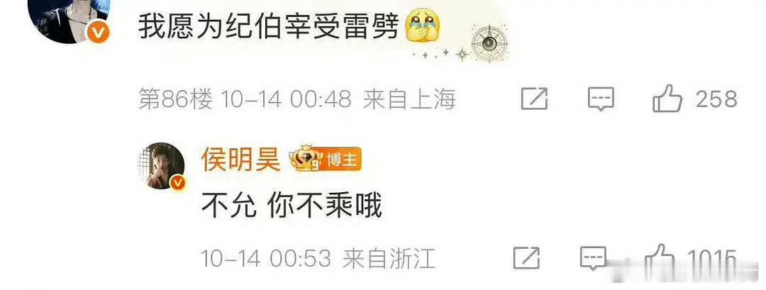 侯明昊评论翻牌粉丝回复“你不乘哦。”这是什么不良发言