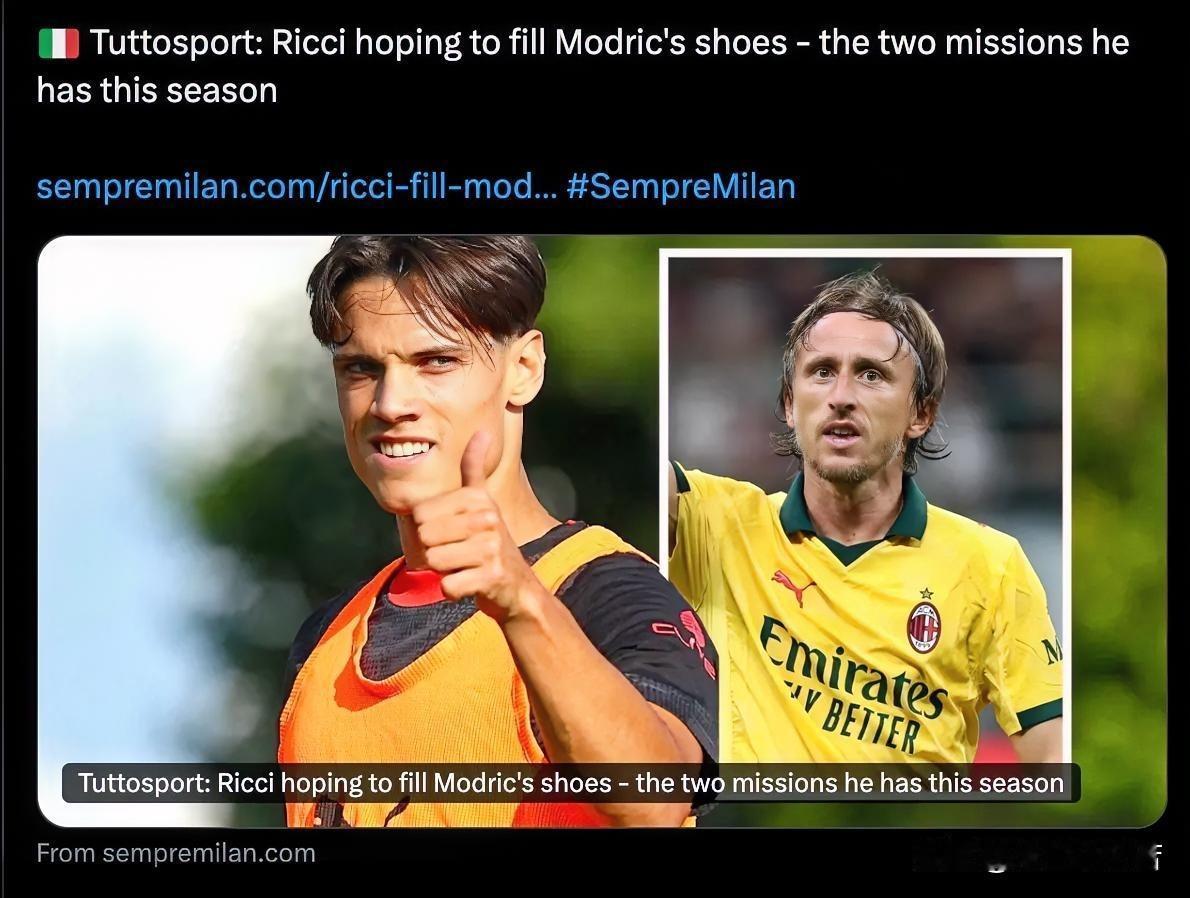 里奇表示我有两大目标,第一是在米兰成为主力球员,接班莫德里奇,第二是重新回到意大