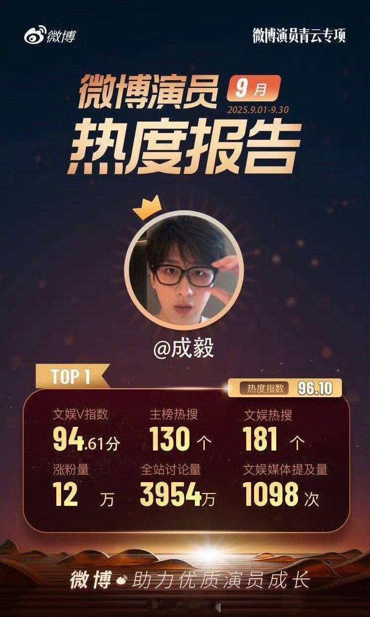 成毅[超话] 九月微博演员热度报告,top1⃣️第一成毅,