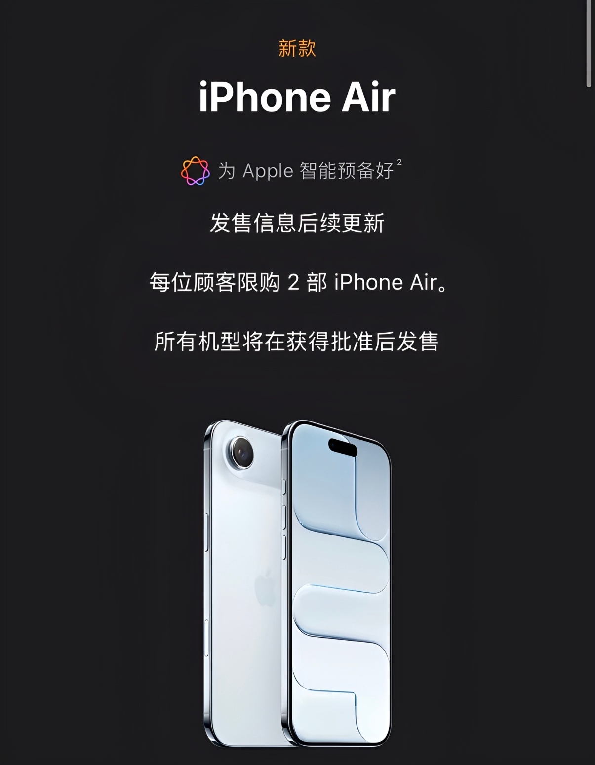 iPhone Air中国版10月17日早9点预购,10月22日开售。国内首款eSIM手机。[馋嘴][馋嘴]