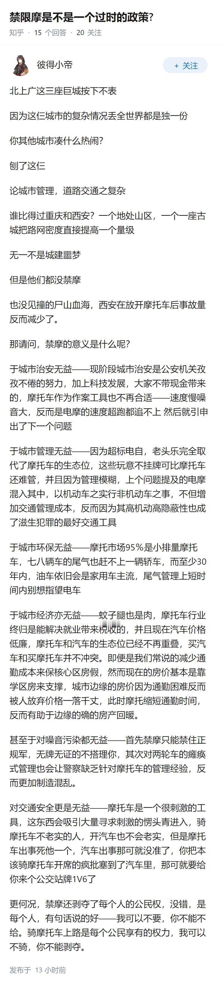 禁限摩是不是一个过时的政策? RT 电摩也好,摩托也罢,电鸡40时速,发生事故都