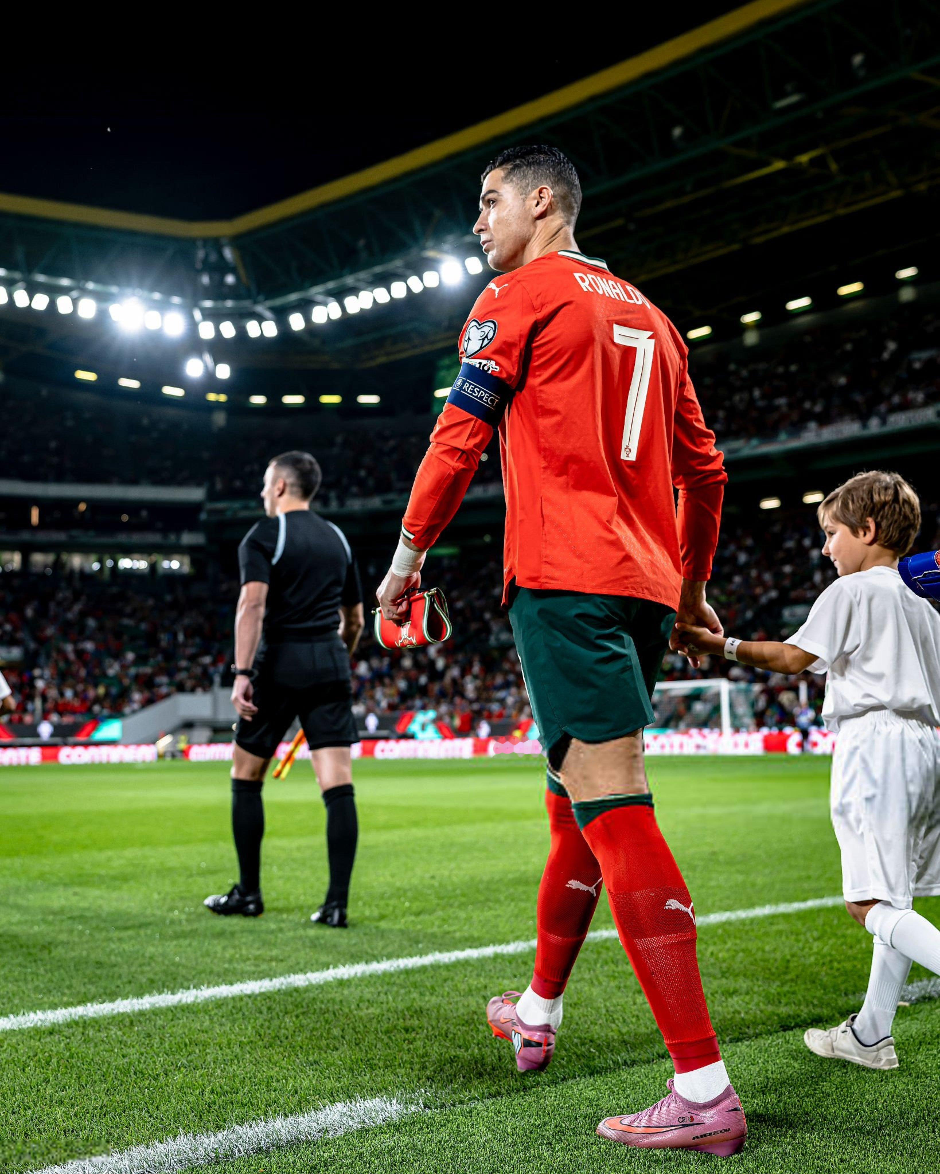 C罗[超话]c罗 进场跳高高,球童:快比我高了拥抱小孩儿,赛后给签名