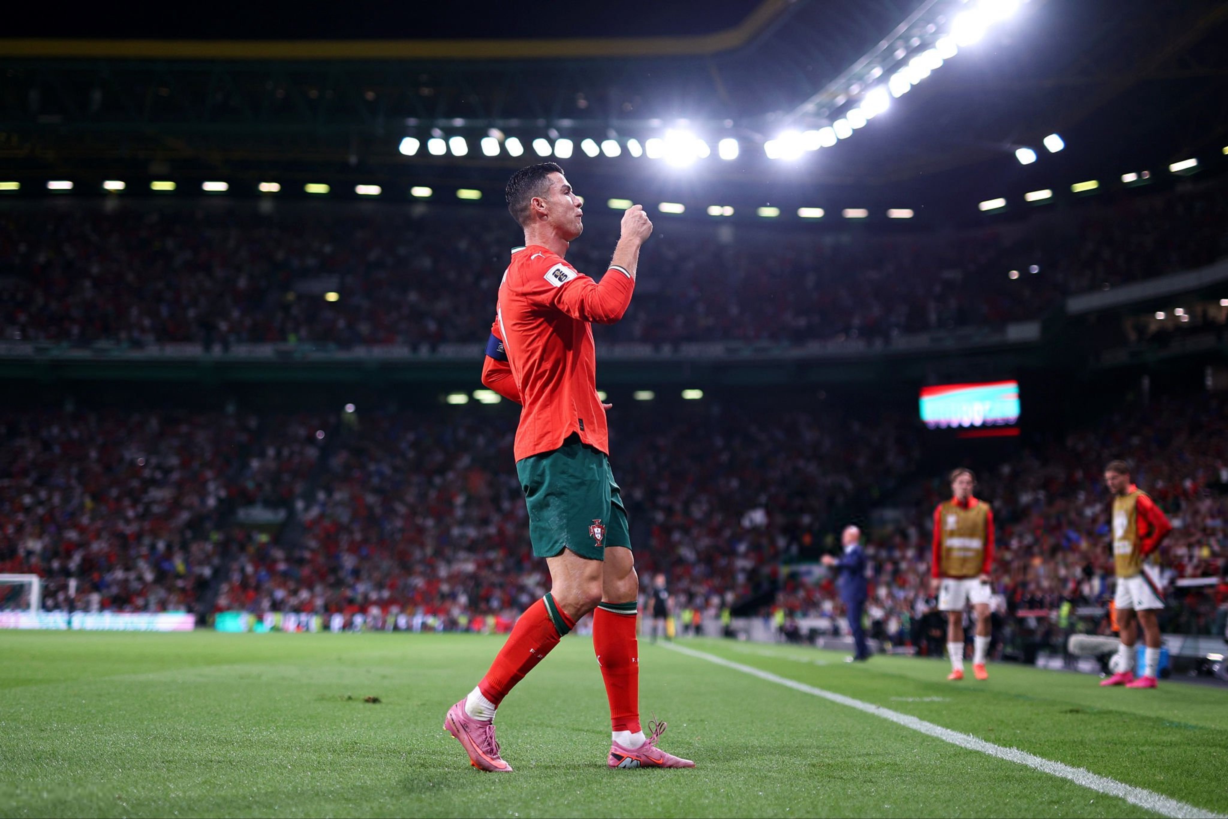 C罗[超话]葡萄牙2比2匈牙利c罗加冕世预赛历史射手王 射手王的霸气庆祝