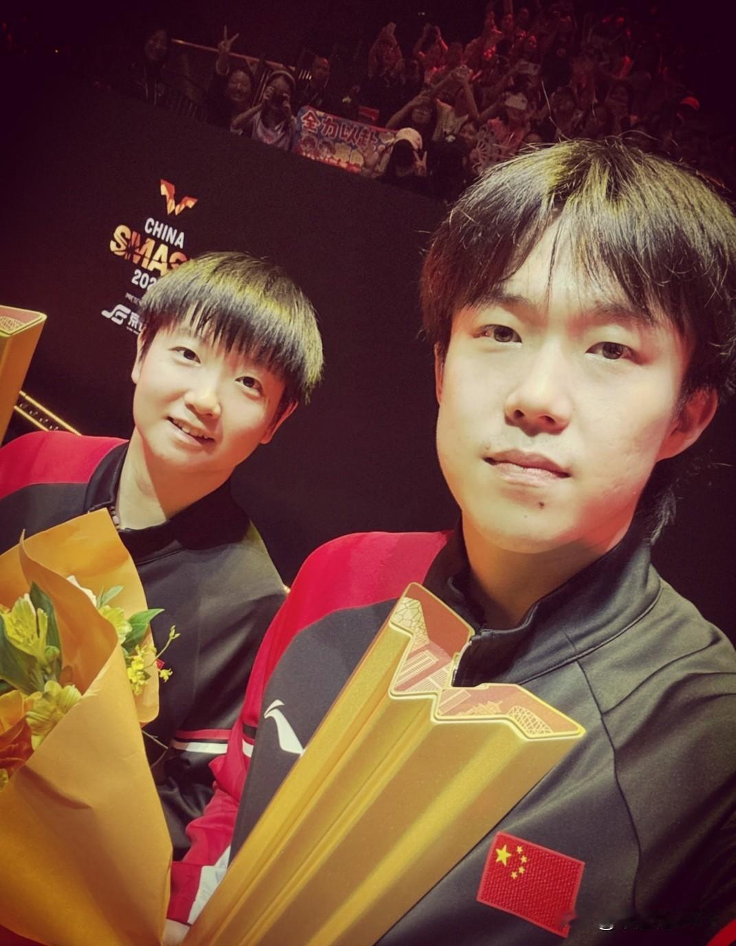 再铸传奇 在2025年中国乒乓球大师赛的赛场上,又一场巅峰对决落下帷幕,国乒混双组合以绝对优势斩获冠军!从资格赛到决赛,他们一路披荆斩棘,每一场都打得极具观赏性。决赛中,两人配合天衣无缝,发球、衔接、扣杀一气呵成,把乒乓球的速度与技巧展现得淋漓尽致,最终成功登顶。 当他们手捧极具设计感的金色奖杯,胸前的国旗在灯光下熠熠生辉时,现场观众的欢呼声响彻场馆。这对组合不仅延续了国乒混双的强势统治力,更用一场场精彩的比赛点燃了球迷的热情。他们的每一次挥拍,都是对“乒乓强国”名片的生动诠释,这样的国乒,谁能不爱?这样的巅峰时刻,注定会在乒乓史册上留下浓墨重彩的一笔!