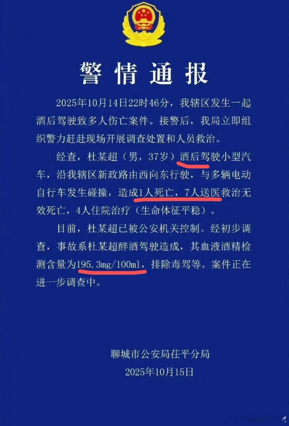 另外和他一起吃饭的就没有一个劝阻的?就让他自己开车回去?山东聊城一起酒驾致8人死亡