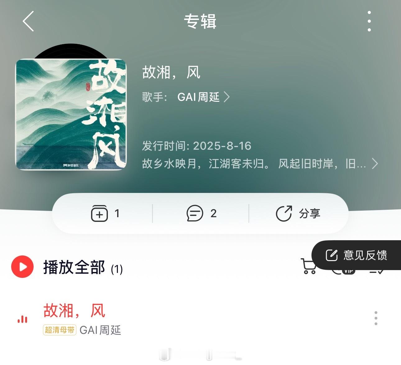 热闹🔥GAI《故湘风》录音室版在网易云上线!浏阳河回来了!!!!GAI