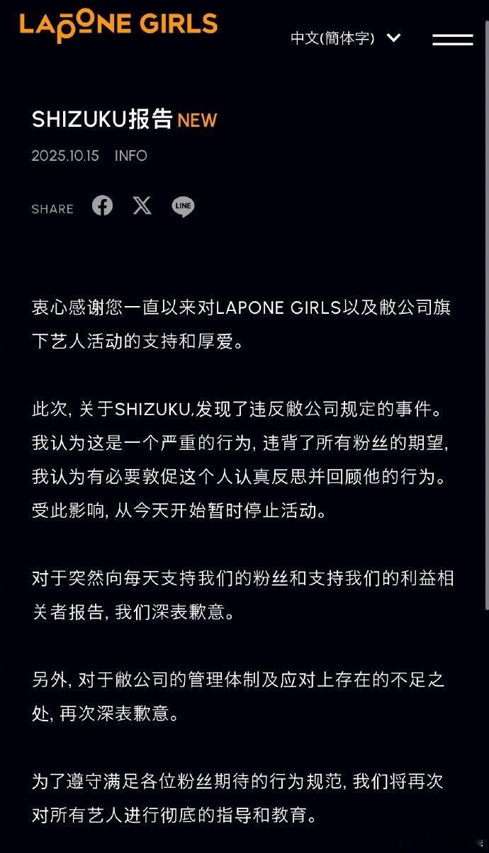 JO1大平祥生停止活动大平祥生 劈腿 据日媒,15日,日本组合JO1成员大平祥生因违反公司规定发表停止活动声明,同时组合ME:I成员饭田栞月也发表停止活动声明。昨日文春爆料JO1人气成员与红白歌会出场偶像陷入“劈腿”风波。