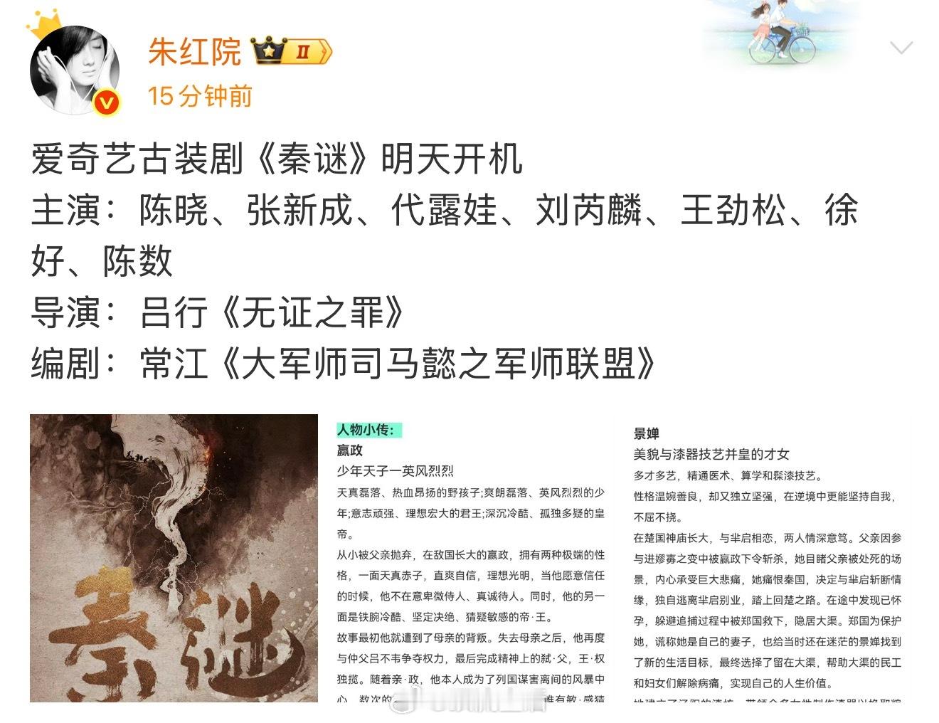 陈晓新戏明天开机,这阵容很不错诶[赞]