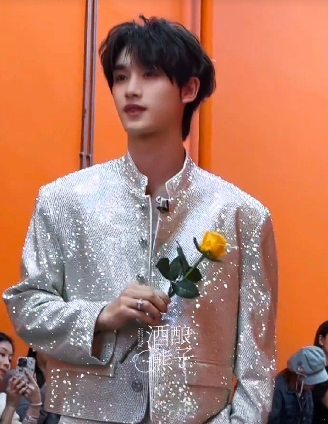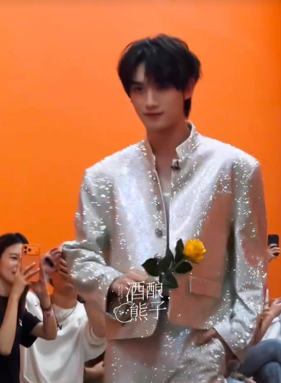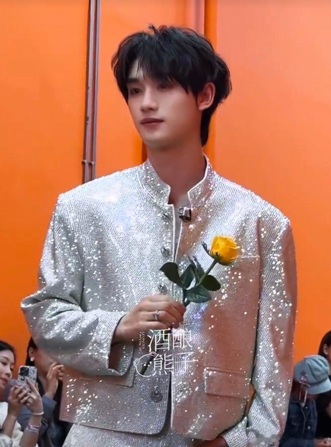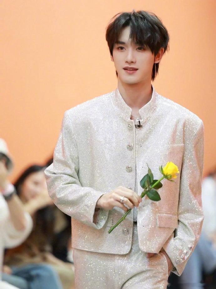 丁程鑫看镜头这一下你好星期六救命!丁程鑫带着黄玫瑰走秀时看镜头这一下,少爷感直