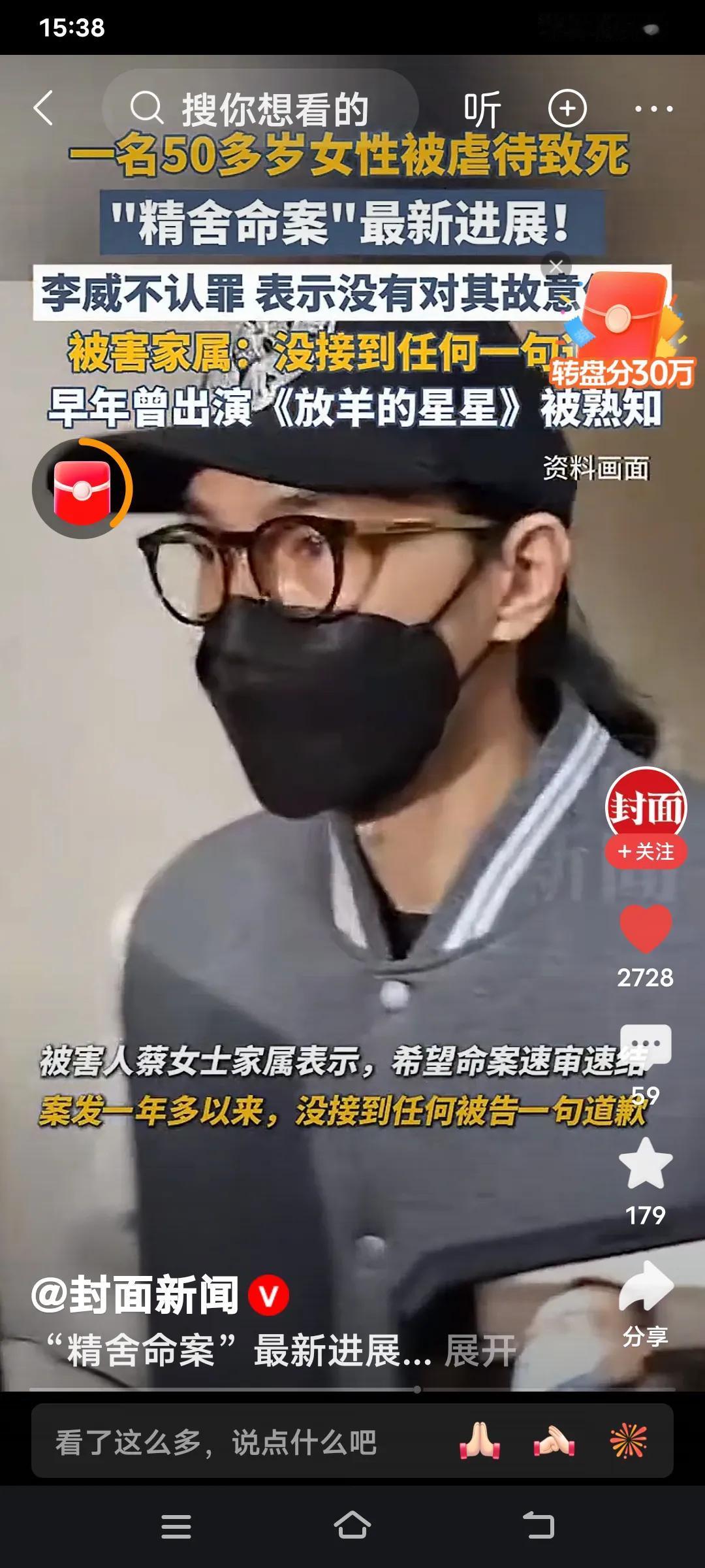 “精舍命案”有新进展,曾出演《放羊的星星》的李威出庭却拒不认罪,称没伤害犯罪,是
