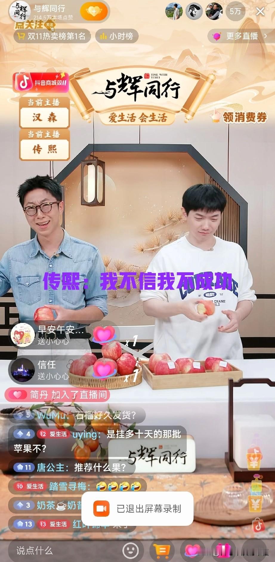 这样的同事关系羡慕不? 你经历过这样融洽的职场吗?你有过这样亲如兄弟的同事吗?你感受过下班也不想急着逃离的惬意吗?没有业绩压力,大家有福同享。有难同当。 有多少老实人人上班抑郁了。不是因为工资多少。而是因为尔虞我诈,明争暗斗的人际关系。 好兄弟来接班儿了。又脆又甜的大苹果。可以带皮啃。传熙啃了几次也没有成功,因为汉森想要一朵小蘑菇,汉森红着脸嘲笑传熙,传熙并不气馁,终于成功了。直播间回荡着发自内心,最纯粹的笑声。