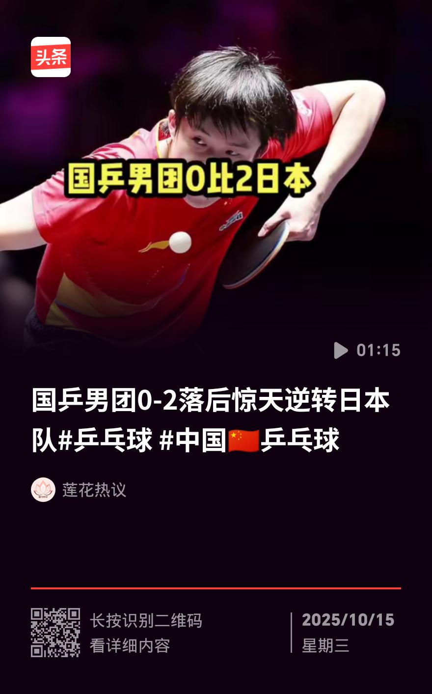 快讯:国乒0-2逆袭日本!王楚钦打服日媒,28年不败太狠 亚锦赛男团半决赛上演“心脏过山车”!国乒开局0-2落后日本,眼看要翻车,林诗栋先扛旗扳分,王楚钦再跟张本智和死磕。 决胜局1-4落后的王楚钦像开了挂,直接逆转赢球,日媒都夸他有“世界第一气魄”。最后梁靖崑锁定胜局,国乒3-2翻盘,把28年对日本不败的神话续上了!国球乒乓王楚钦 乒乓王楚钦 赛场雄狮王楚钦