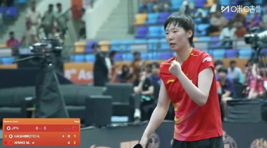 亚锦赛团体赛王曼昱强势出击,红装战袍下尽显国乒底气 在印度举行的乒乓球亚锦赛团体赛上,王曼昱一身红色战衣,如赛场“红色闪电”,在与日本选手桥本的对决中,凭借过硬实力与昂扬斗志,以3:1拿下关键一分。 看她握拳的瞬间,那是国乒选手的自信与底气!每一次挥拍都带着对胜利的坚定,每一次相持都彰显着过硬的技术功底。在抗日对决的战场上,王曼昱用实力诠释了国乒的强大,为团队开门红立下汗马功劳,也让我们看到了中国乒乓军团在赛场上的绝对统治力!王曼昱