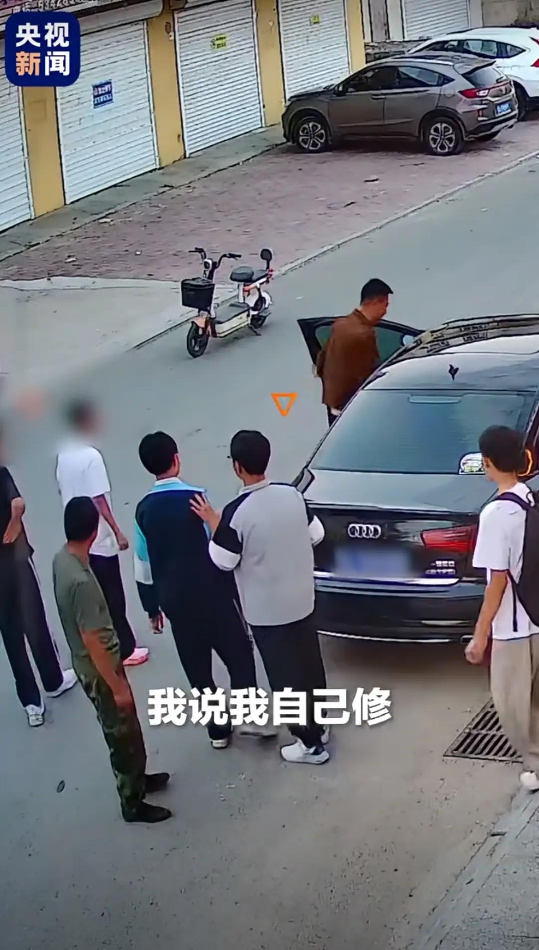 滨icon,3个大男孩路过一家火锅店,骑车的男孩竟不小心刮蹭到店老板汽车。男孩赶