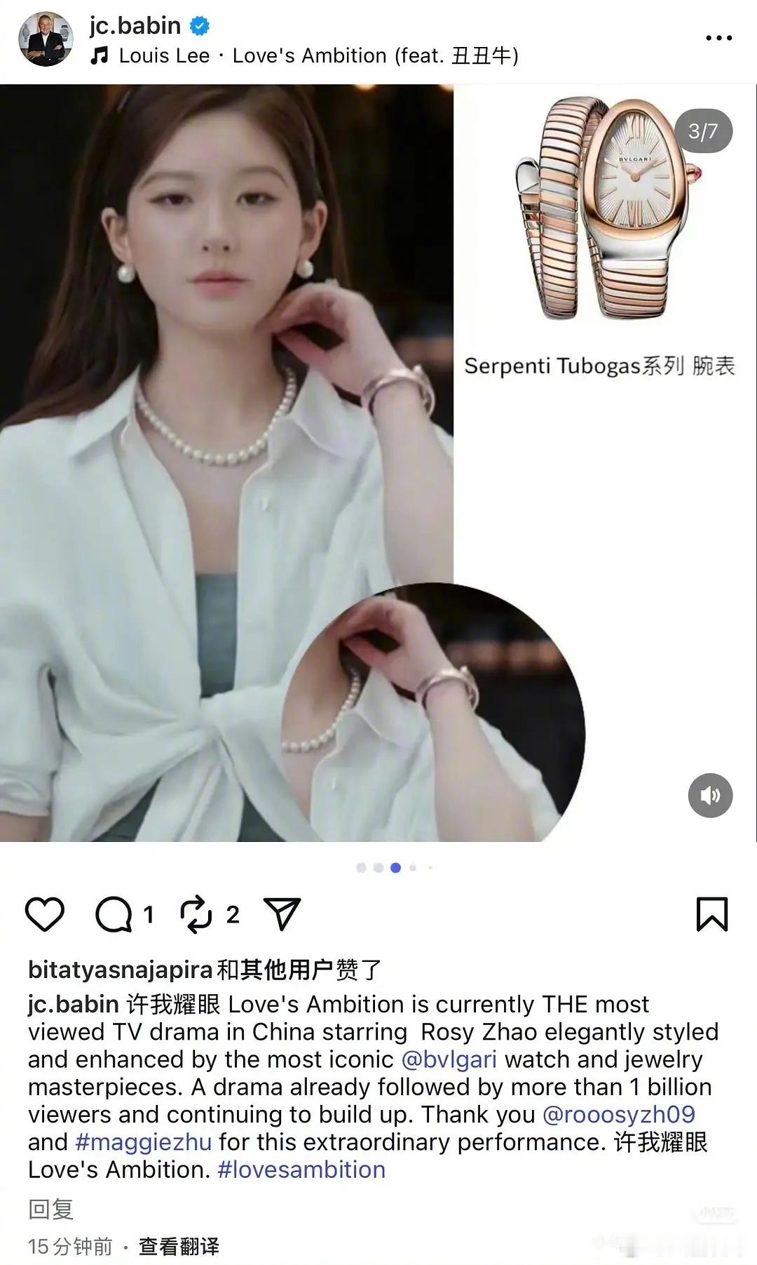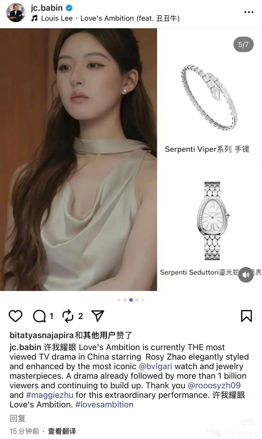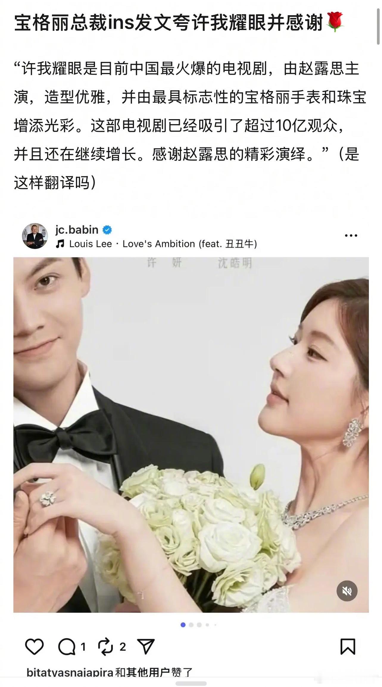 宝格丽总裁ins发文夸《许我耀眼》并感谢赵露思