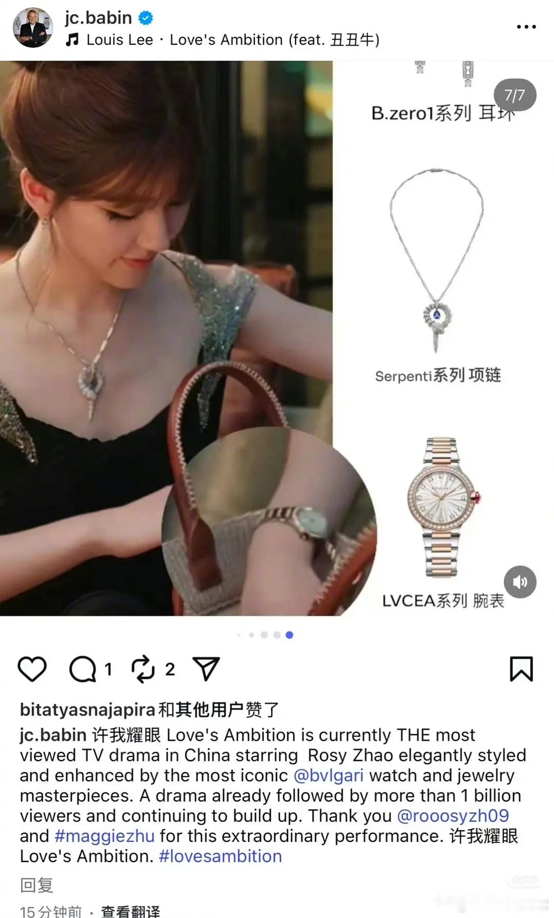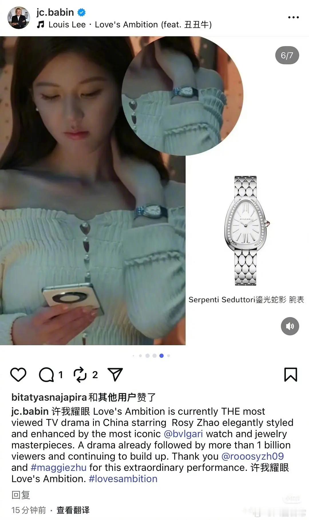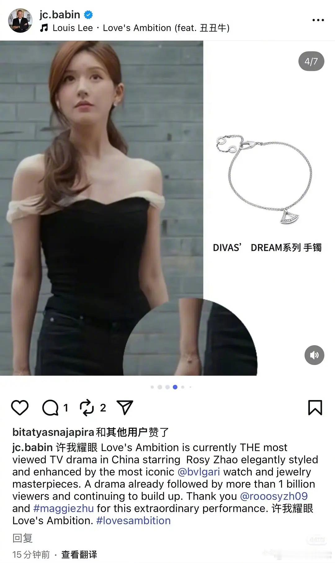 宝格丽总裁ins发文夸《许我耀眼》并感谢赵露思
