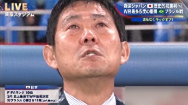 日本队击败巴西队并未让我惊讶,让我极为震动的是,几乎每次赛前奏国歌时,日本队主帅森保一都眼含热泪,让人敬佩万分,热血沸腾! 第一次注意到这一幕是在2022年世界杯E组首轮,德国对阵日本,赛前奏国歌时,日本主帅森保一饱含热泪,高唱国歌,让我记忆犹新! 那一刻,我被震惊了,因为这么多年,我从未在某国足身上看到这一幕。 在16进8比赛中,激战120分钟后最终点球惜败莫德里奇率领的克罗地亚,无缘8强,这位主帅向自己的国民90度鞠躬致歉! 要知道,在这届世界杯上,日本队击败了德国队、西班牙队,表现相当出色! 2025年3月20日18时35分,世界杯预选赛亚洲C组第7轮比赛,日本主场对阵巴林,赛前的奏国歌仪式上,当国歌响起的那一刻,我再次看到了日本主帅森保一,他眼中依旧饱含热泪,深情跟唱国歌! 2025年10月14日18时30分,日本队主场对阵巴西队,东京国立竞技场,一场热身赛,森保一再度高唱国歌,泪洒赛场! 在这一刻,日本队能否击败巴西队已经不那么重要! 1968年8月出生的森保一,在90年代期间的国脚时代,踢我们的国足一点优势都没有!30年后,他率领的日本队,我们只能望其项背了! 日本诺贝尔奖的成功,日本足球的成功,岂非偶然?日本队夺得世界杯冠军还会远吗? 与其满世界的全球选帅,还不如学学森保一的这种精神! 我们到底缺什么?难道真的不知道!