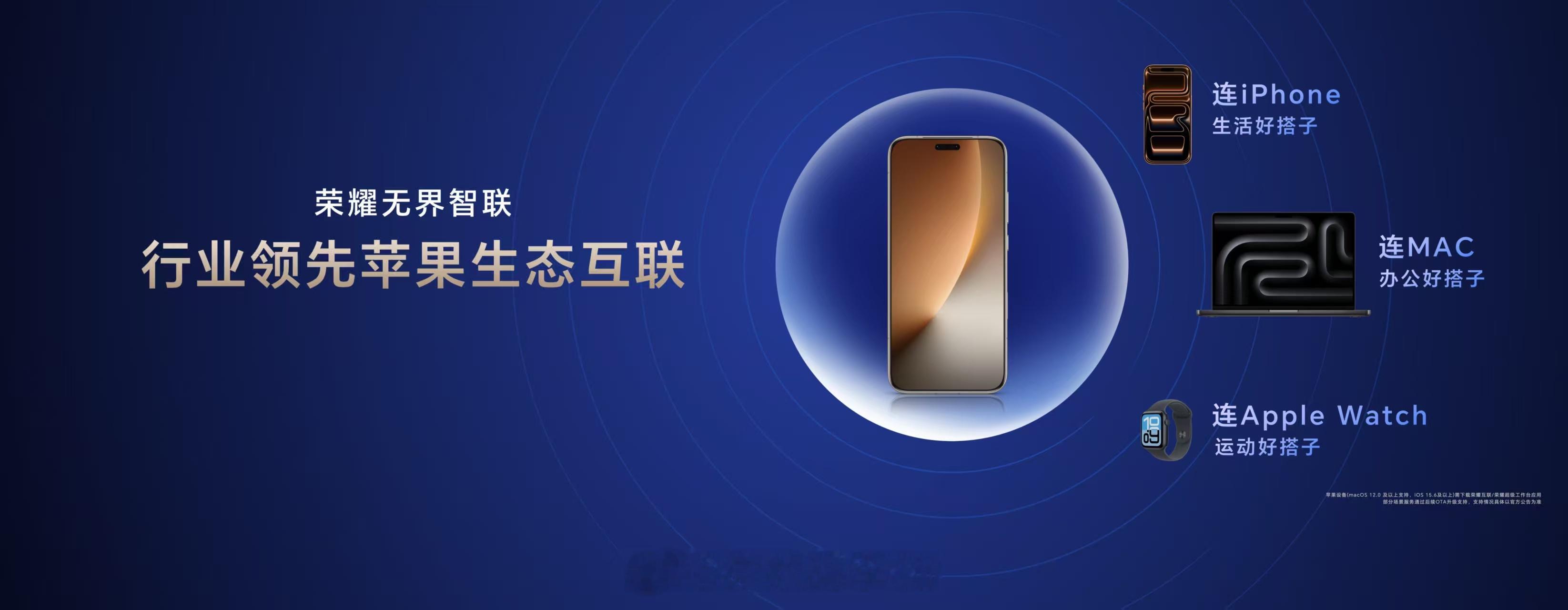 荣耀全品牌互传实现向全品牌智联的进化,让数据与服务围绕用户需求在所有设备间自由流转。 荣耀还带来最强苹果生态智联解决方案,荣耀Magic8秒变苹果生态超级搭子,可轻松实现荣耀设备与 iPhone 设备的信息互通互联。 荣耀无界让所有品牌的PC都可以加入荣耀信任环,构建出真正开放、可信、无界的智慧生态。 荣耀发布会荣耀Magic8MagicOS10