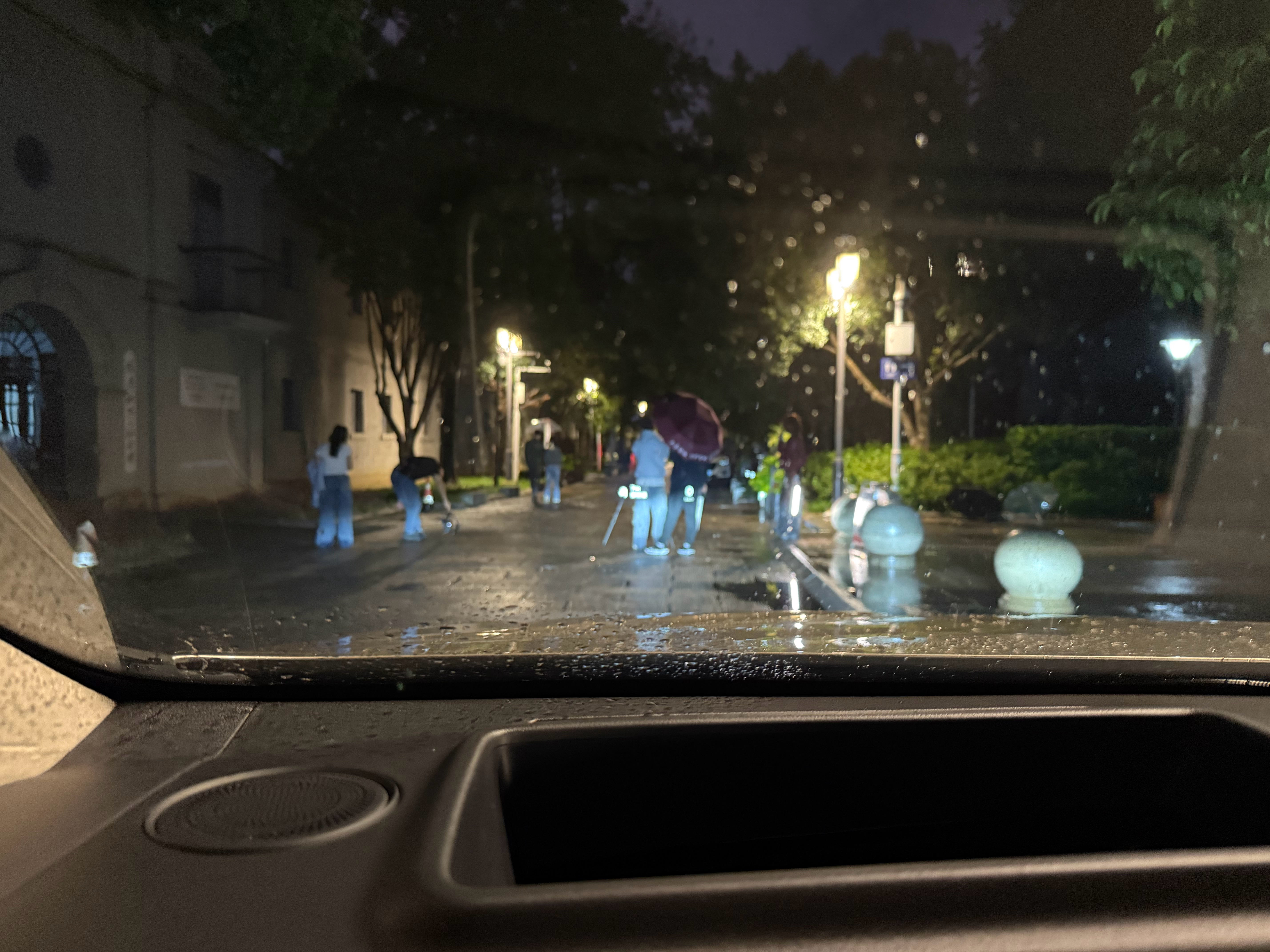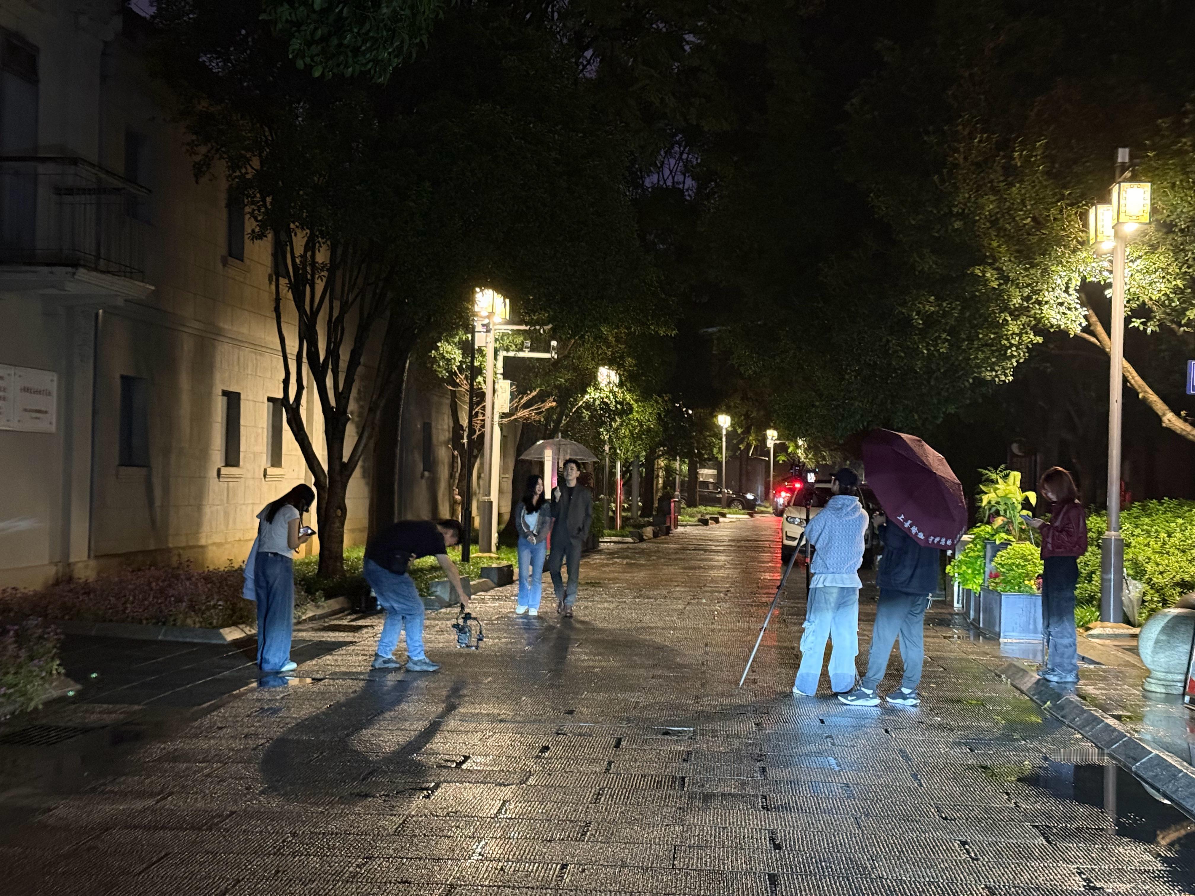 这应该是一场关于爱情的戏吧!要不然不会选在这个雨夜!拍完回去煮点姜汤吧!