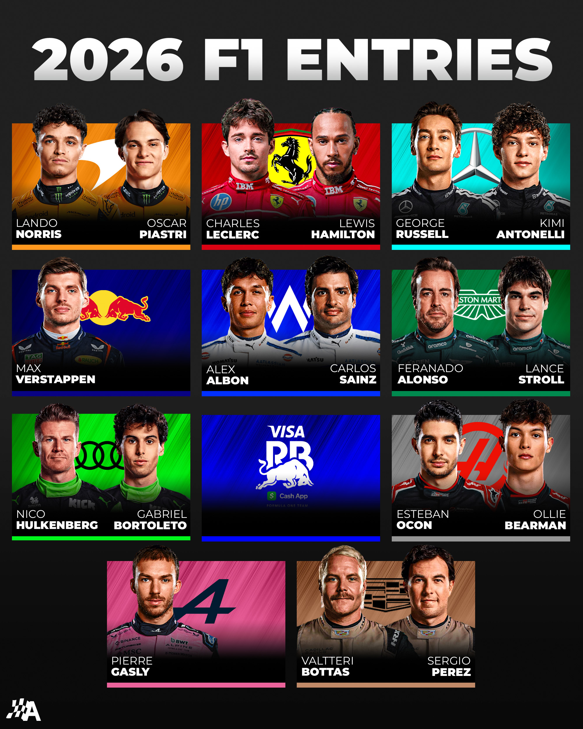 梅赛德斯正式宣布了2026赛季阵容,拉塞尔和安东内利留队继续搭档,这将是拉塞尔2017年加入车队以来的第10年。