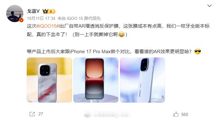 可是他这次直接出场带AR膜,哇!蓝厂是真舍得呀