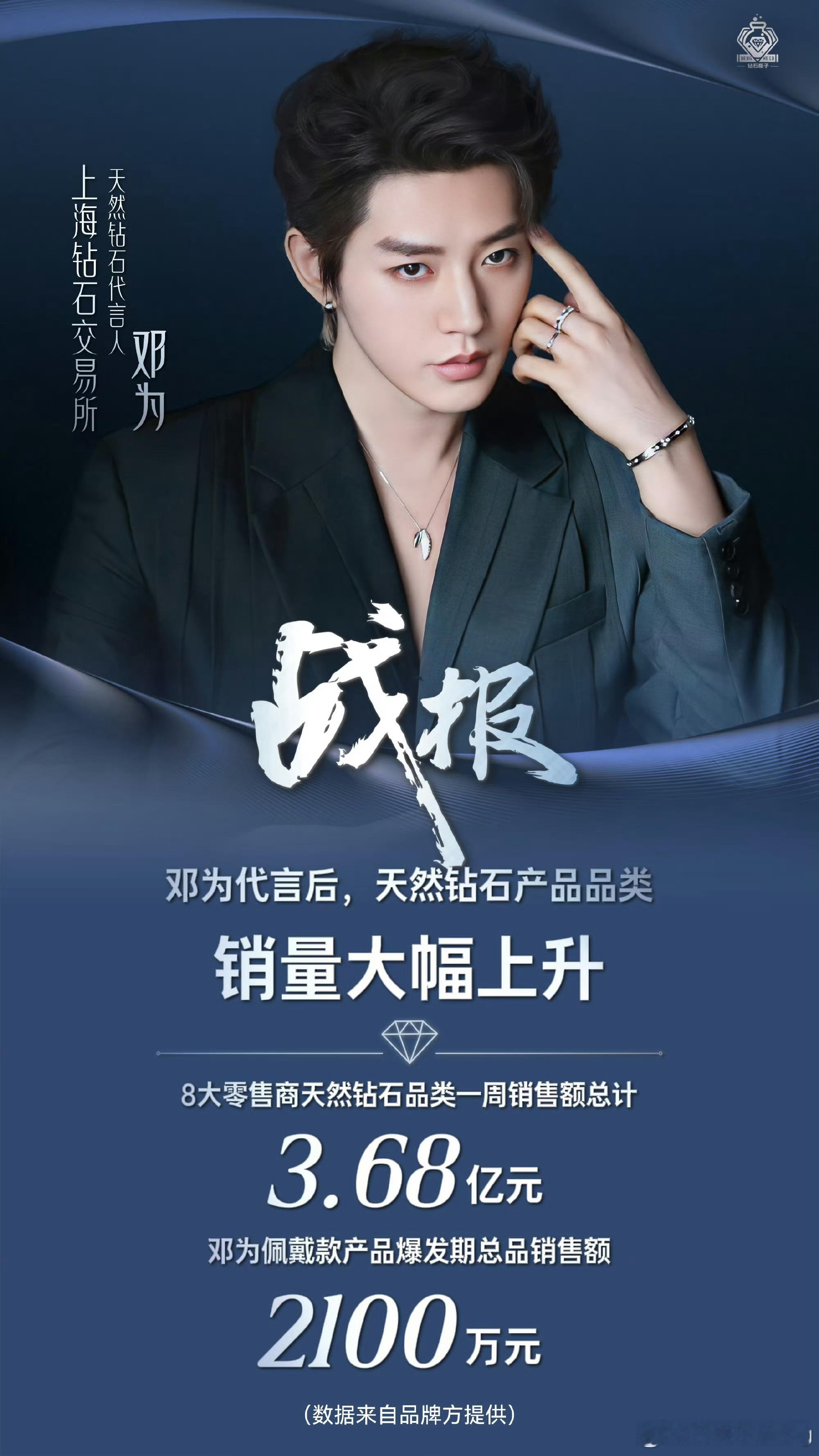 邓为代言后,八大零售商天然钻石品类𝟭周销售额总计3.68亿邓为佩戴的款销售21