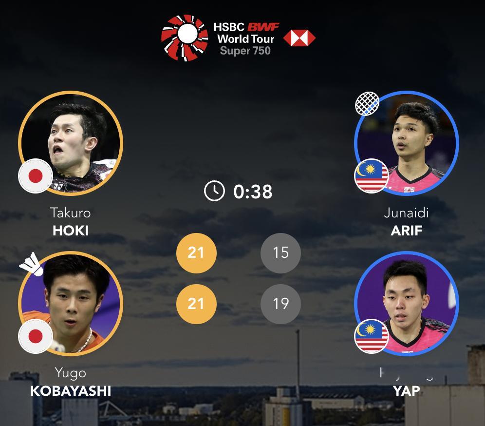 保木卓朗/小林优吾🇯🇵 21-15、21-19 🇲🇾阿里夫/叶睿庆