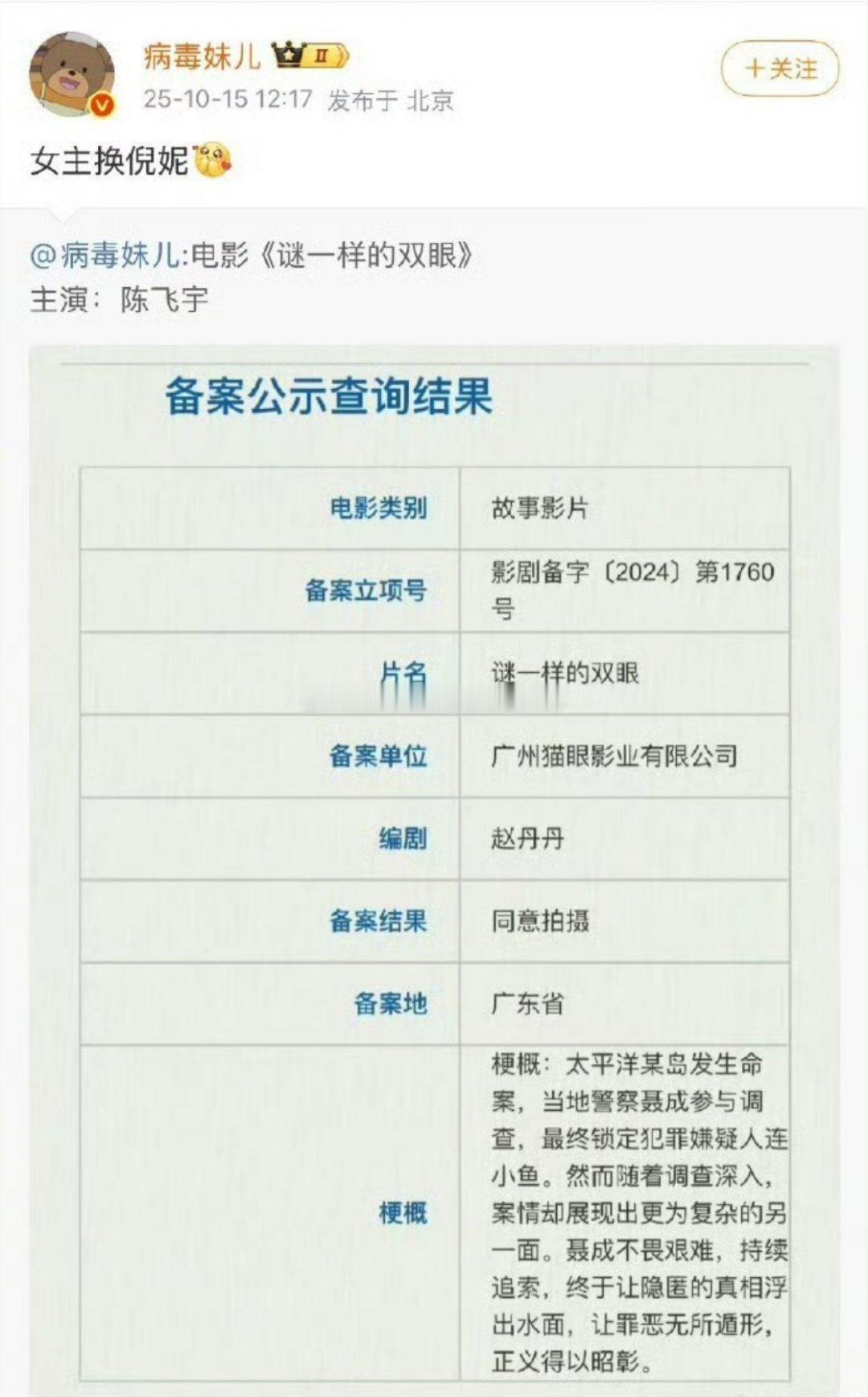 🍉🍉女性悬疑电影《谜一样的双眼》倪妮、陈飞宇