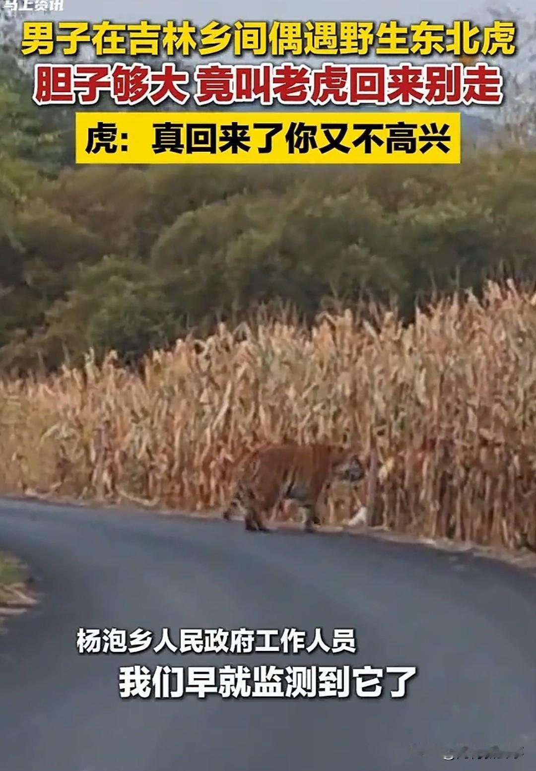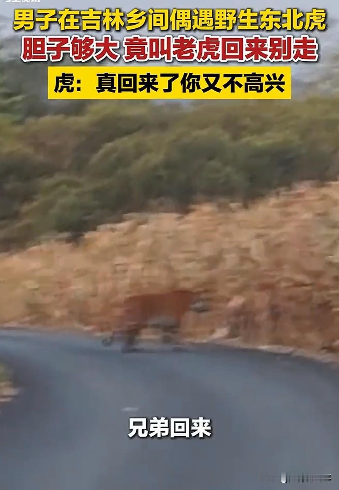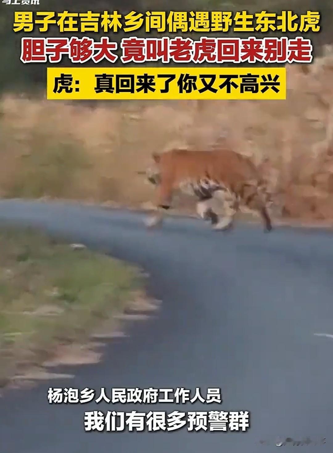 男子在吉林村道偶遇野生东北虎 2025年10月14日,吉林珲春市杨泡满族乡松林村的村道上,一只野生东北虎现身,这可太让人惊讶了。视频里,村民驾车发现老虎后超淡定,摇下车窗招呼“回来,回来,兄弟,别走,搁这待着”,老虎还真停了下才走。10月15日乡政府证实老虎受伤,还对村民做了预警,好在没人受伤。 其实这不是吉林第一次有野生东北虎“刷存在感”。此前延吉市五道村附近,也有东北虎出没咬死牛,还有男子夜驾和老虎隔窗对视。林业局做了警示和宣传,牛被咬死也有保险理赔。看来和野生动物的“不期而遇”也得妥善应对呢。