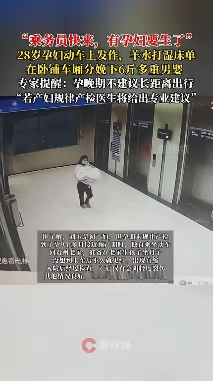 10月13日,湖南长沙,一怀孕9个多月的孕妇回老家,在火车上突然腹痛难忍,羊水打