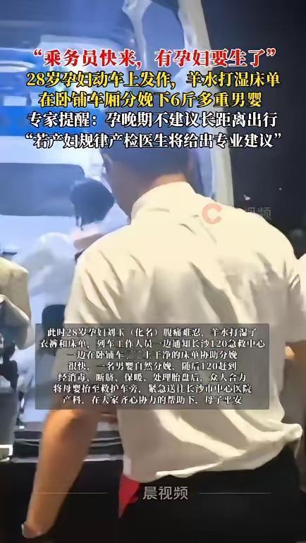 10月13日,湖南长沙,一怀孕9个多月的孕妇回老家,在火车上突然腹痛难忍,羊水打湿了衣裤和床单,工作人员得知后,立即找来干净的床单协助分娩,最终顺利生下一名6斤重的男孩,送往医院检查也没有大碍。 信息来源:潇湘晨报 网友评论: 我就是28周从北京回老家的,再晚两周真怕生路上。她37周自己坐火车,真够狠的。 以前生个小孩就不需要多少钱,几十块钱就能生个孩子,现在生个孩不有个万把都不行兴志还有些几十万,所以现在人为什么不愿生就是这样。 就地医院生,会怎样?花得多少钱?我提前从老家回来市里面生。根本就花不了多钱! 心真大都快生了,还坐火车 孕晚期不宜长途跋涉