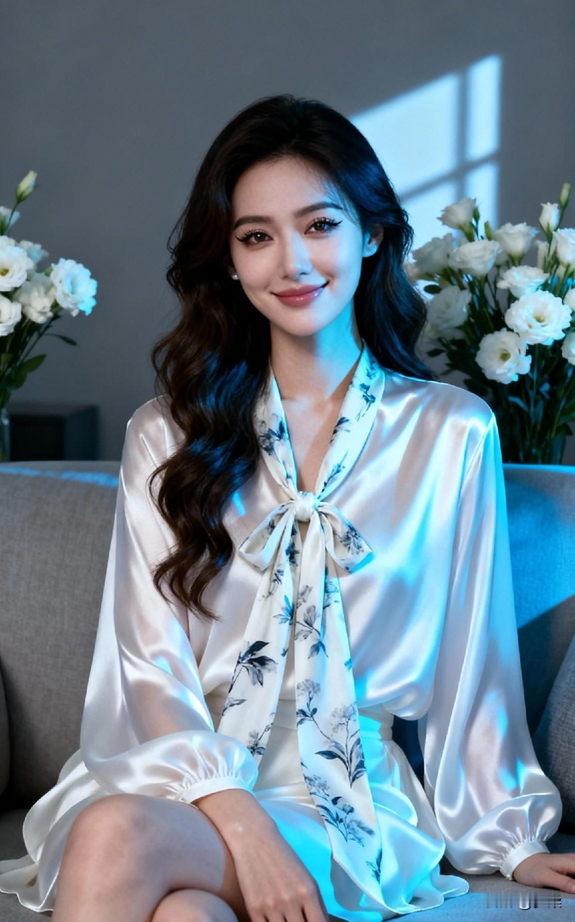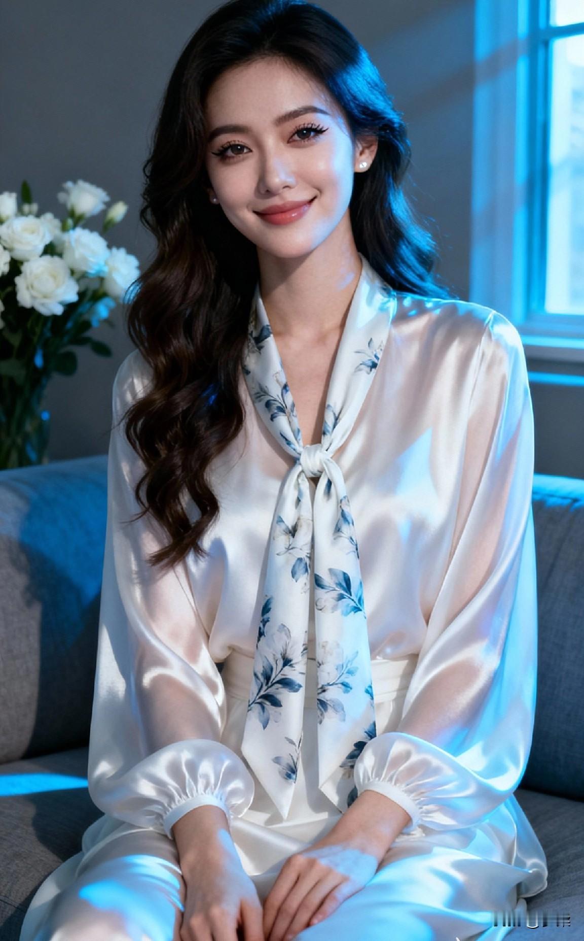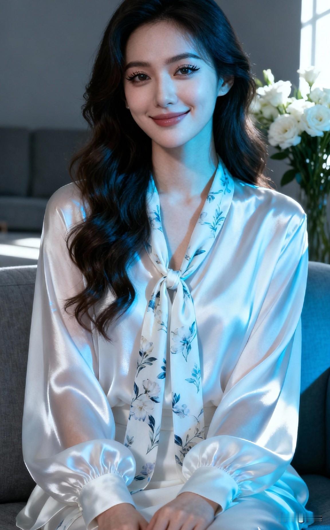 温柔粉色的丝质睡衣,搭配优雅的微笑,尽显女性魅力。