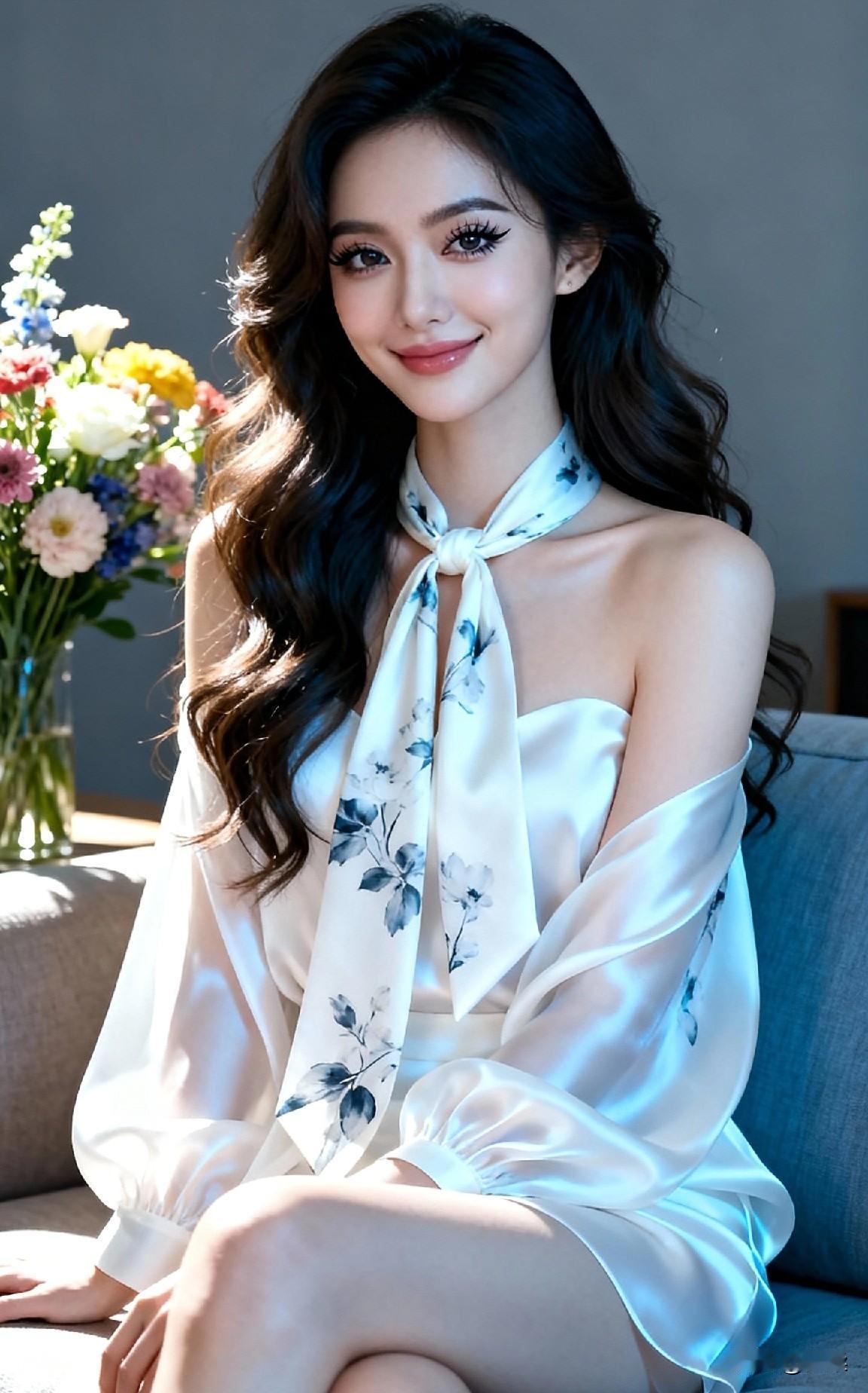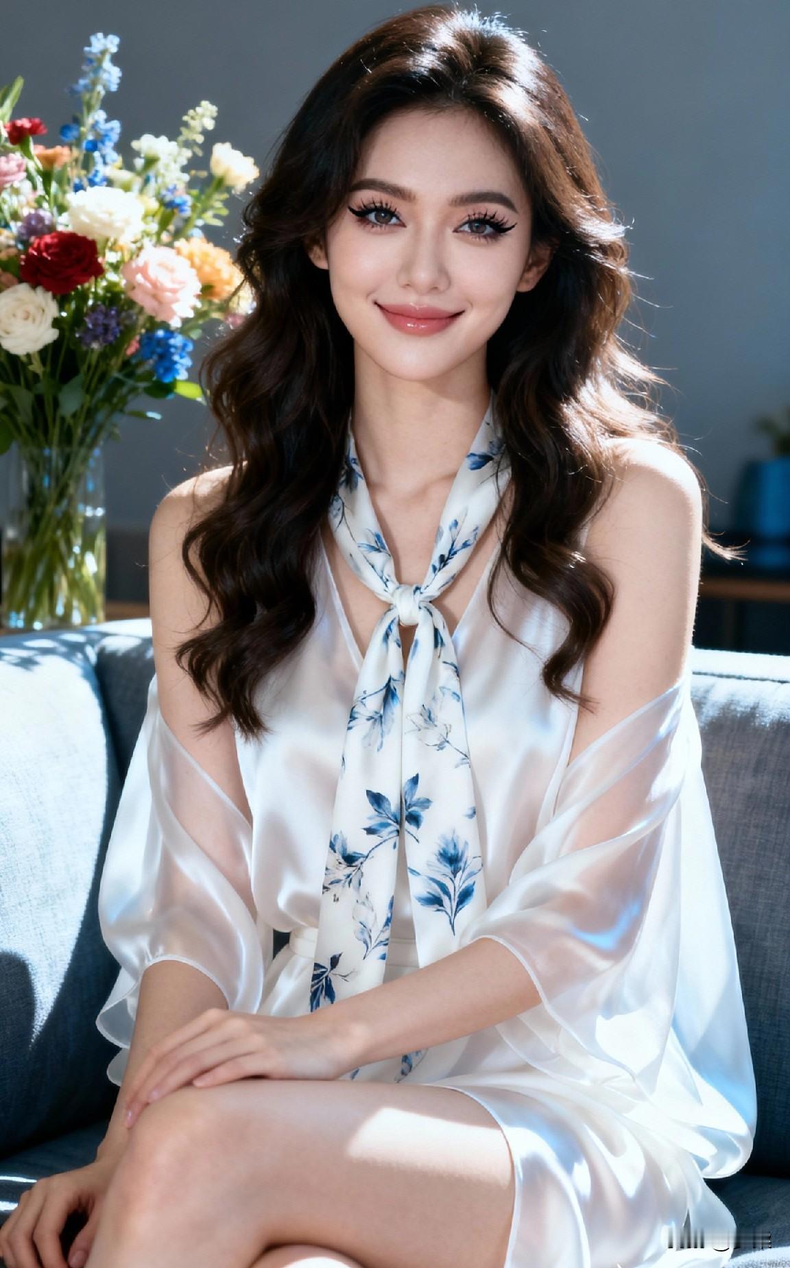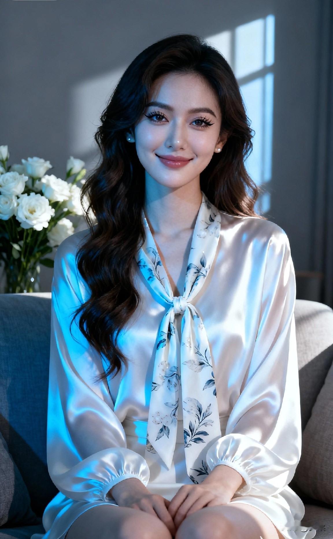 温柔粉色的丝质睡衣,搭配优雅的微笑,尽显女性魅力。
