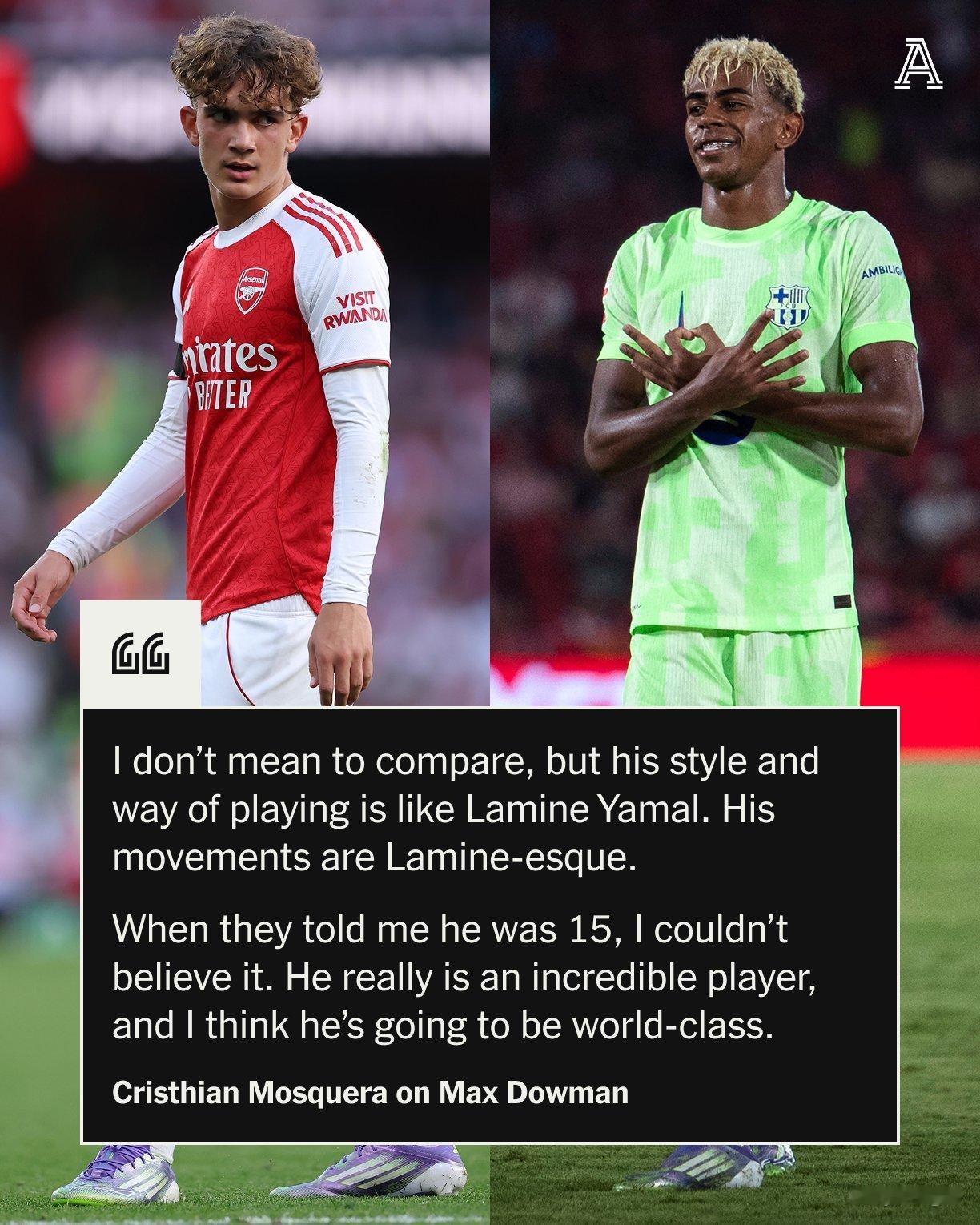 —“道曼的风格让我想到了亚马尔,难以相信他才15岁,我觉得他会成为世界级球员。”