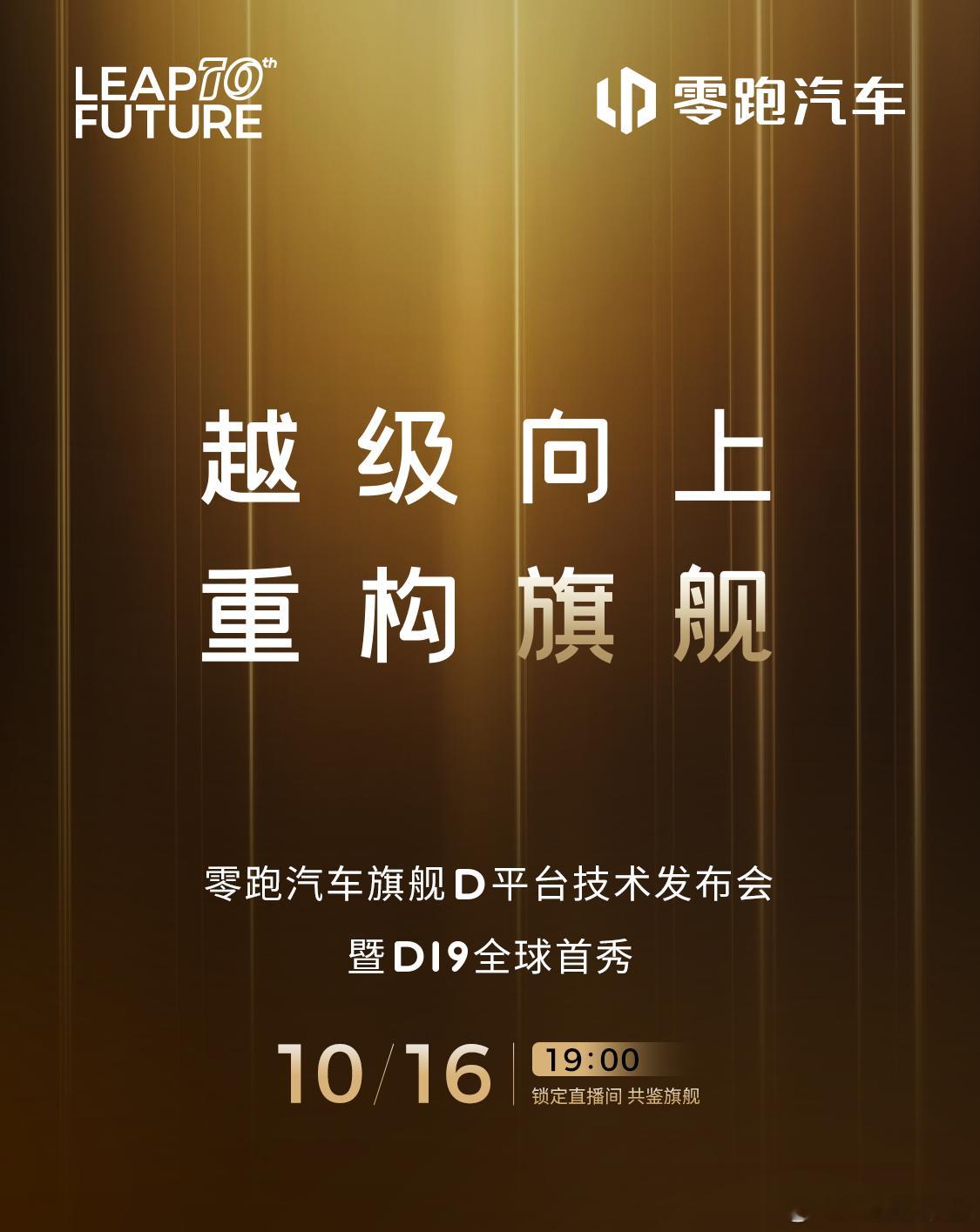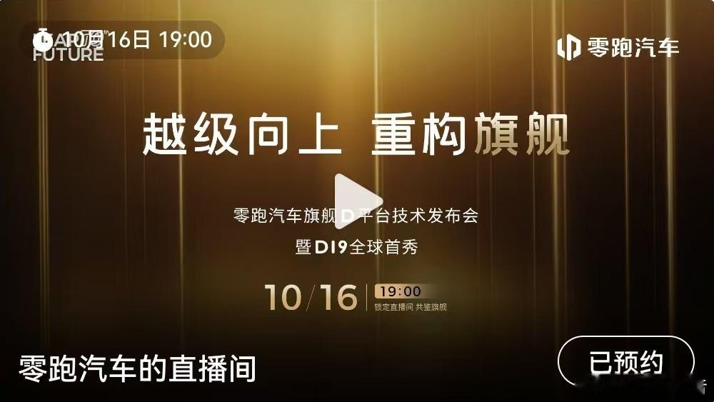 零跑汽车10月16日19:00旗舰D平台发布及D19全球首秀正式开始!20:20光影对话,与代言人一起自见新境!