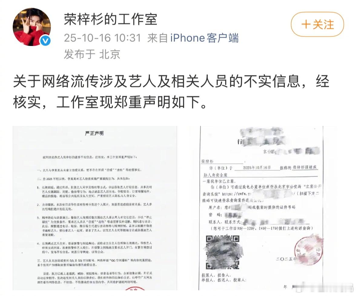 荣梓杉 李禹熹omg,荣梓杉工作室辟谣了,称与李禹熹不是恋爱关系,而是私生骚扰[傻眼]荣梓杉工作室辟谣