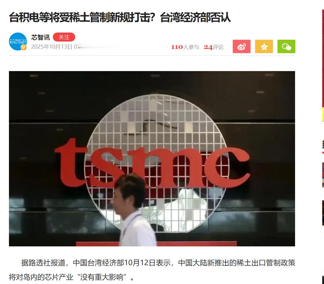 台经济主管部门、鸿海、台积电:安啦,我们的稀土是买韩国和欧盟的厚,没事!
