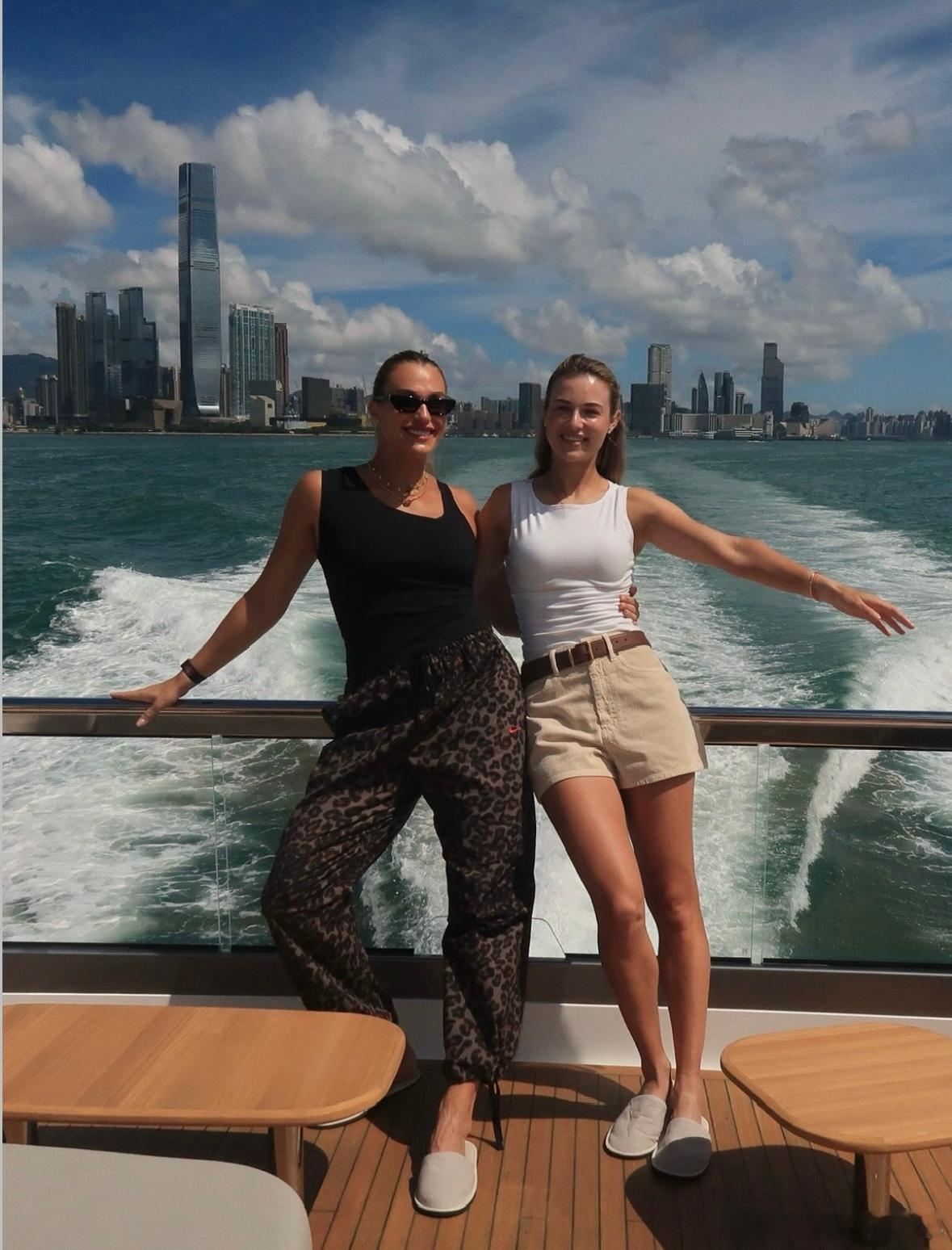 Anna和Aryna的香港之行,好姐妹!两个人一起在快艇拍照!突然发现这俩人确实有一些共同特点啊,都住在迈阿密,同一家经纪公司,平时都喜欢做造型美美的等等wta[超话]