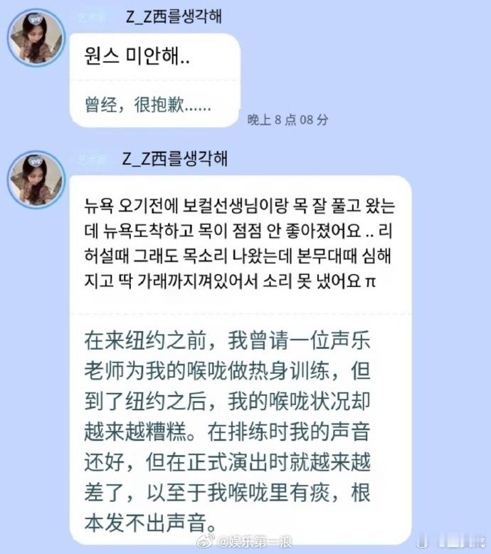 周子瑜道歉​​​周子瑜发了泡泡为今天维密舞台的表现致歉,因为生病喉咙痛导致的状