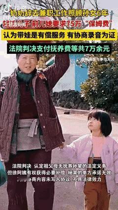 “都是钱闹的!”新疆乌鲁木齐,大妈帮儿子带了6年孩子,不料等儿子离婚后,大妈将儿子和前儿媳张某告上法庭,要求支付7年的“保姆费”75.28 万元,外加垫付的医疗费、教育费等 3.99 万余元,总计索赔近80万元,网友:奶奶带娃有字据有录音,防范意识挺强。 据读嘉新闻10月15日报道 徐大妈从2016年孙女小敏出生前就开始帮忙照料,为了带孙女,她甚至辞掉了自己的多份兼职工作。带娃的辛苦,只有经历过的人才懂。2022年7月,徐阿姨把儿子和前儿媳告上了乌鲁木齐市沙依巴克区人民法院。 法庭上,徐阿姨拿出了证据——儿子杨某写的一份书面承诺,答应每月支付8000元“保姆费”,还有关于此事的协商录音。她觉得自己的付出应该得到回报。但前儿媳张某觉得委屈,她认为家人之间的互助不该完全用钱来衡量,而且那份承诺她没签字,也不算数。 法官审理后发现,徐阿姨并非全程独自带娃,有时是和儿子儿媳一起照顾。虽然儿子写过支付“保姆费”的材料,但前儿媳并不知情。小两口离婚前给过徐阿姨2.17万元“抚慰费”,前儿媳张某也承担了家庭不少开支。 法院最终判决儿子和前儿媳支付徐阿姨抚养孙女的必要费用等共计6.8万余元,远低于徐阿姨申请的75万多元“保姆费”。 法官对此案有段话说到人心坎里去了。他说祖父母帮带娃,是出于亲情和关爱,这种付出值得尊重和肯定,但不能完全用商业保姆的标准来计价。家庭不是市场,亲情无法明码标价。 家人之间帮忙,特别是长期带娃或者有大额支出,最好也能提前沟通好。哪怕是自家人,把事情说在前头,留个凭证,不是为了生分,恰恰是为了避免日后生矛盾,更能维护亲情。 各位读者你们怎么看?欢迎在评论区讨论。